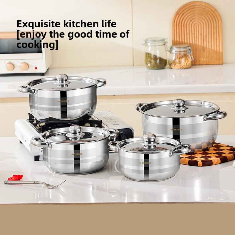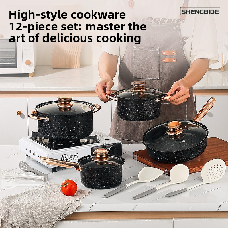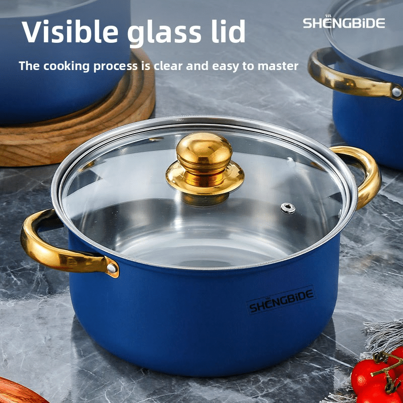Cross-border Stainless Steel Blue Cookware suit Golden Handle Six-piece Soup Pot Milk Pot Frying Pan Wok Cookware 12pcs