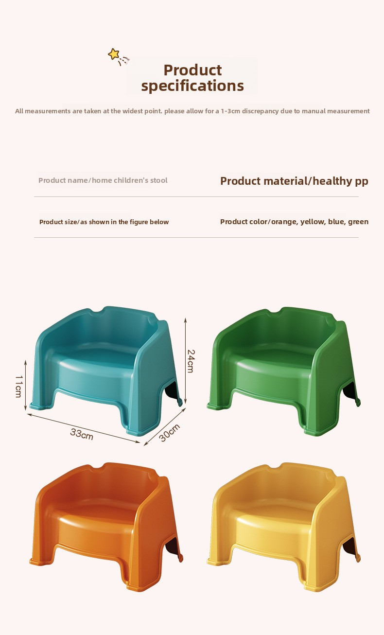 Small Stool, Low Backrest, Kindergarten Small Chair, Plastic Bench, Cute Small Stool for Kidsren's Living Room