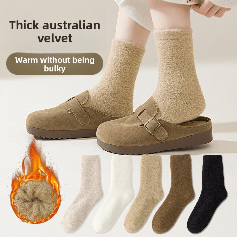 Australian velvet socks children autumn and winter fleece-lined thickened warm double-sided plush sleeping floor Maillard socks winter