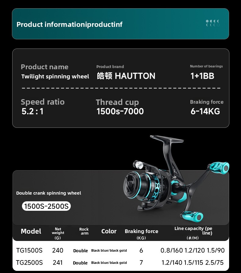 Hao Dun Gap-Free Far Throw Luya Spinning Wheel Double Shake Squid Wheel Micro Fishing Wheel 5.2:1 Throw Rod Wheel Fish Wheel