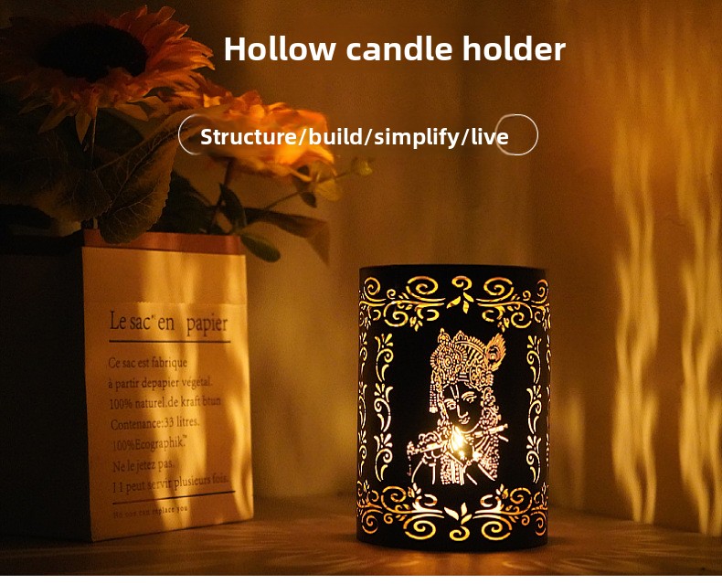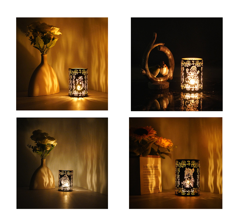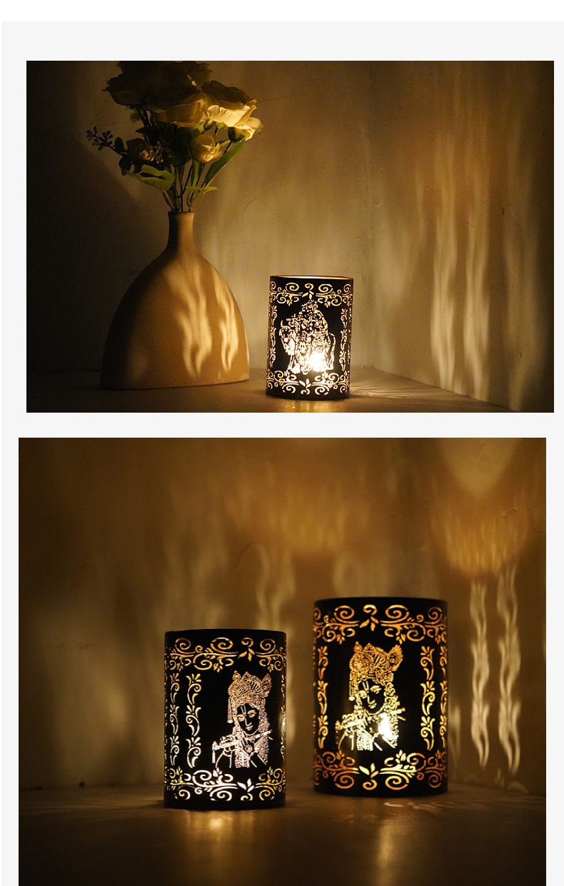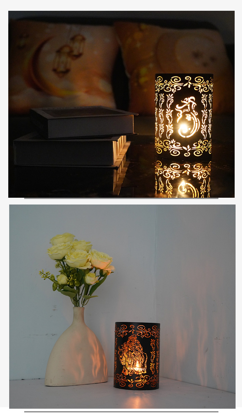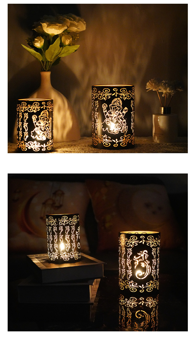 temu New Elephant God Iron Candle Holder Diwali Hollow Projection Decorative Ornaments Crafts Cross-border Hair