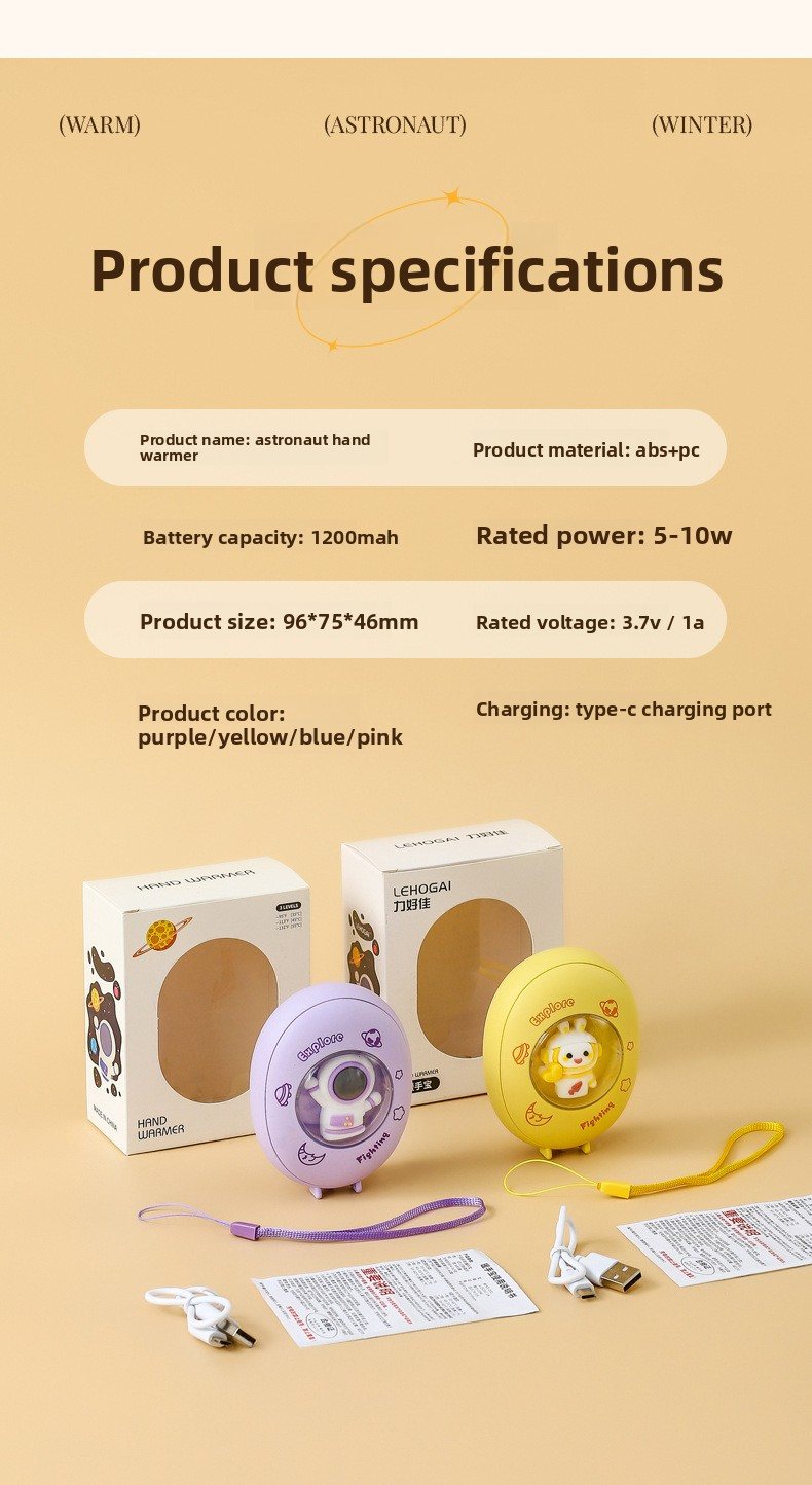 New Hand Warmer Mini Portable USB Rechargeable Atmosphere Light Cartoon Hand Warmer Baby Warmer Gift Customization
