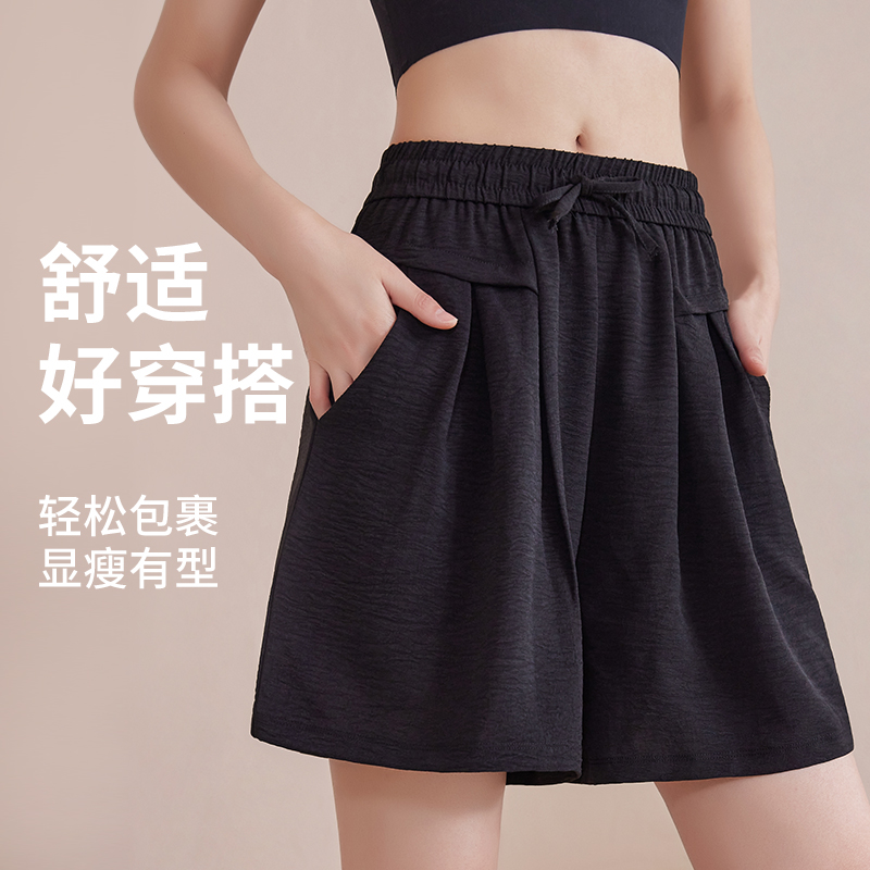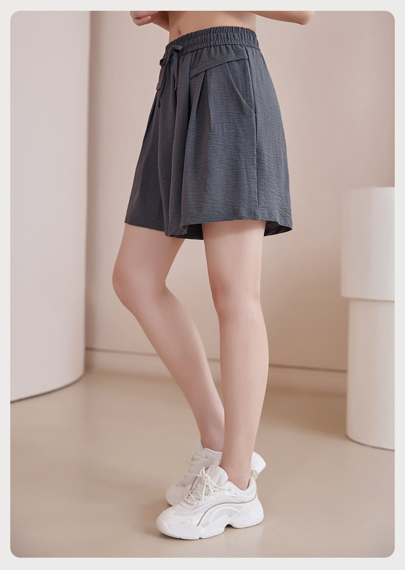 Plus-Size Summer Sports Shorts for Women with Drawstring, Elastic Waist, High Waist, Anti-Exposure, Five-Point Length, for Running, Yoga, and Fitness