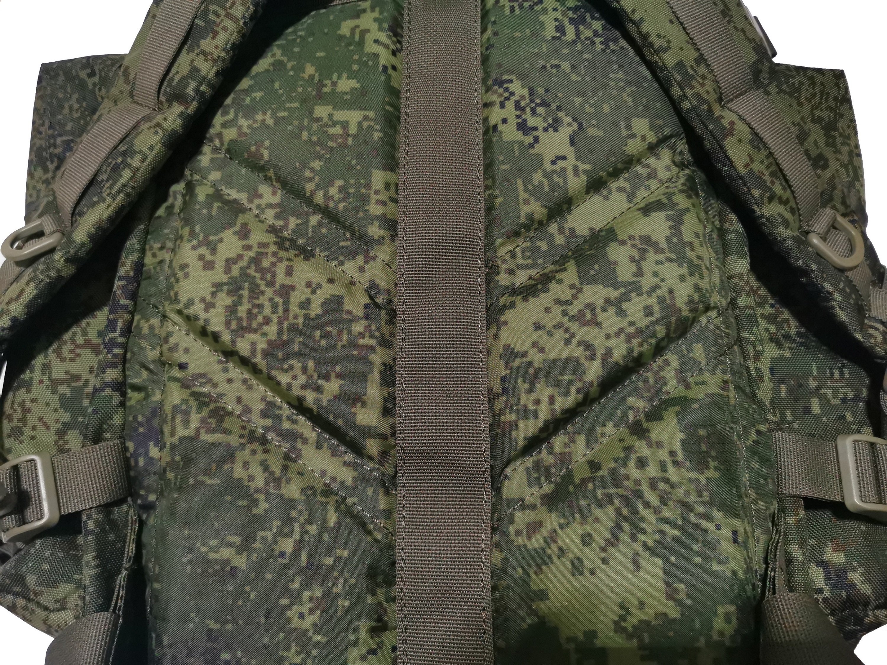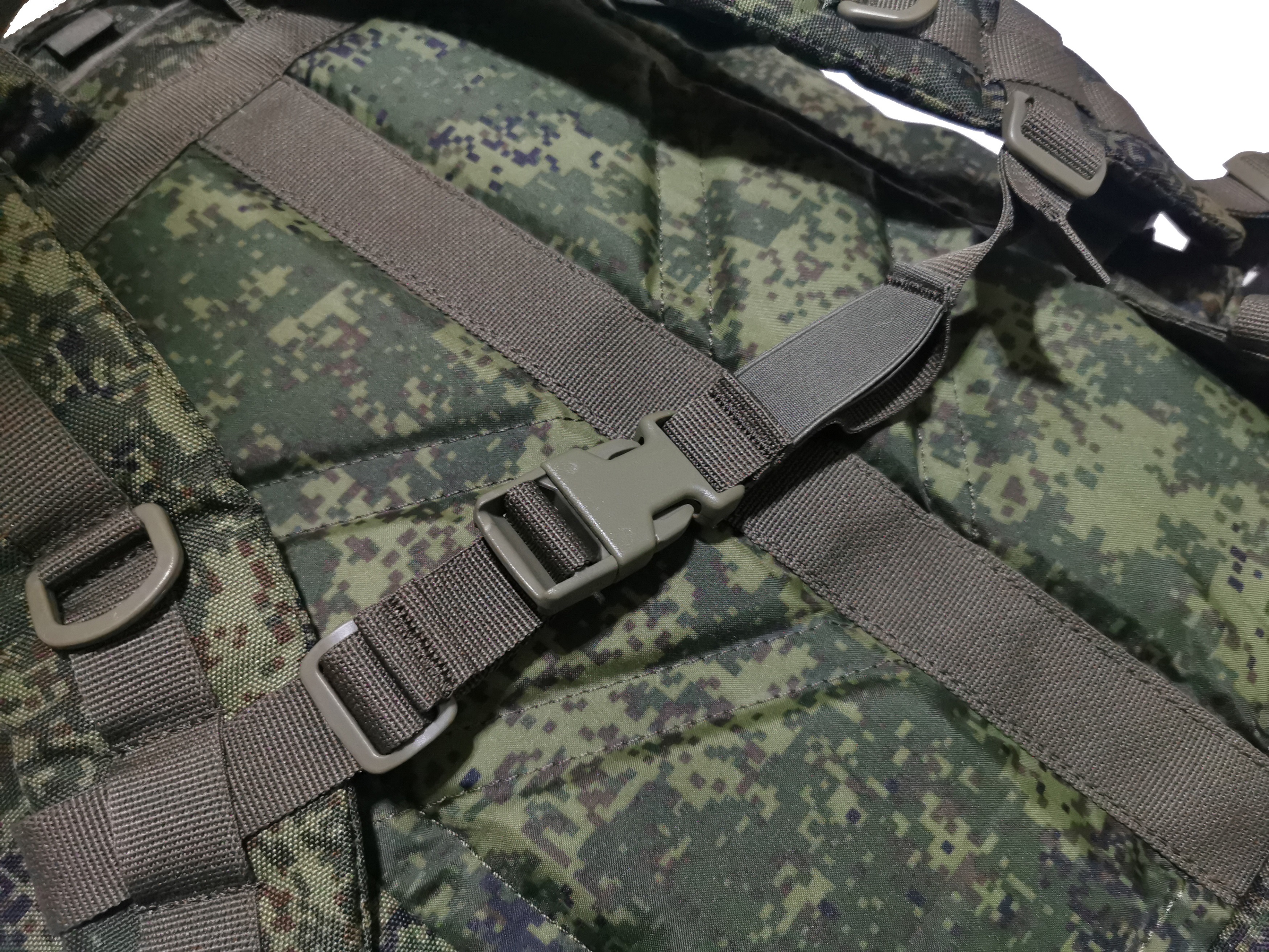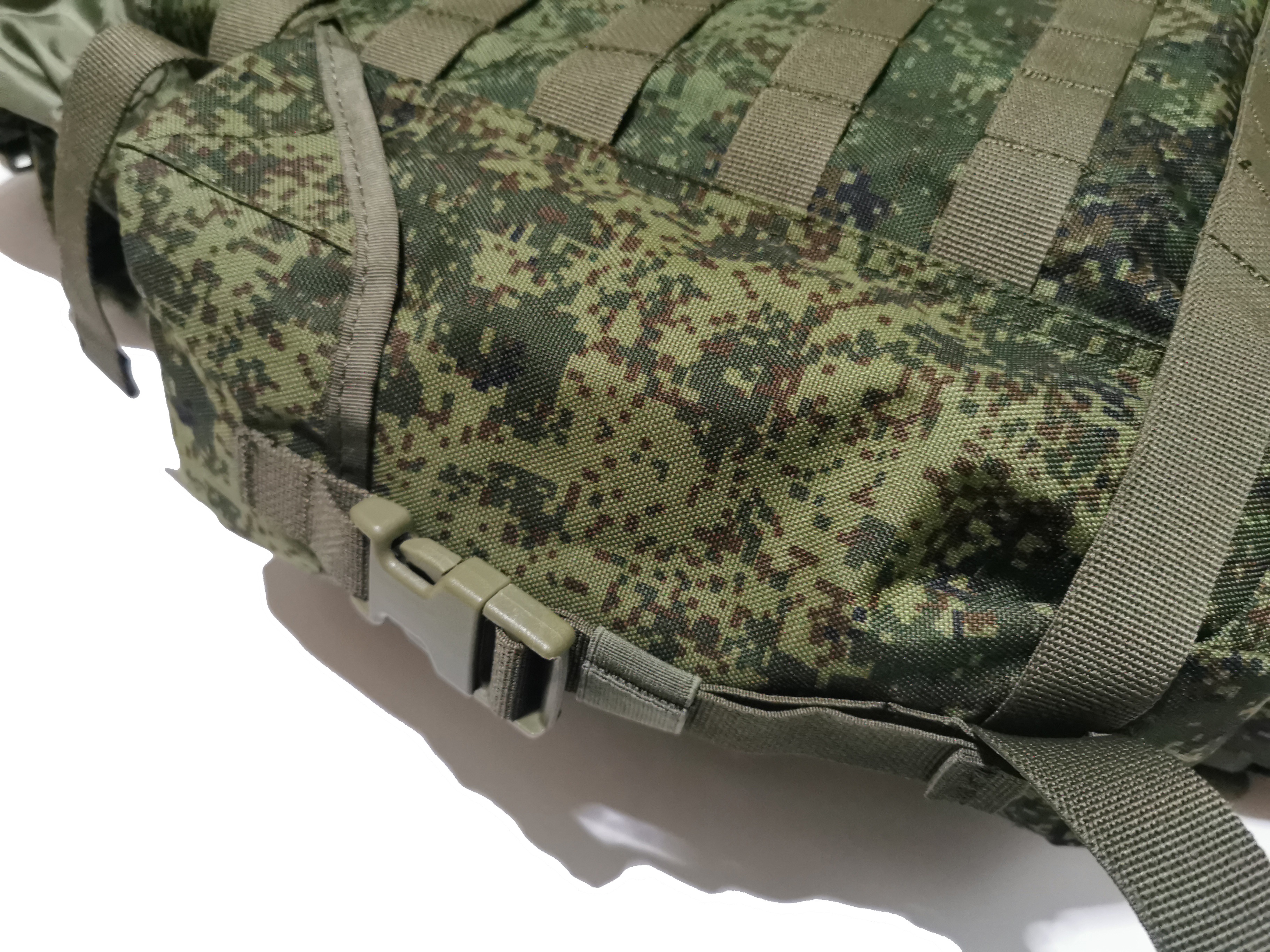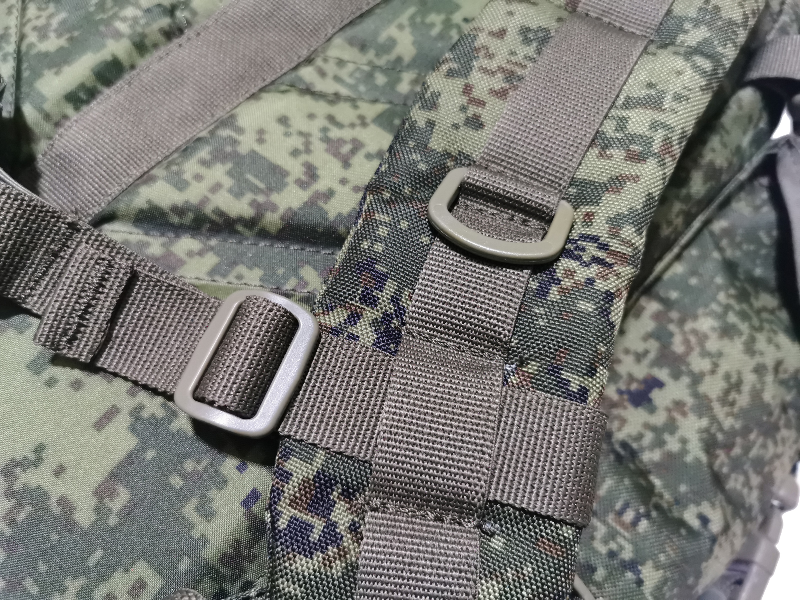 面料采用500D,PU防泼水涂层,进口消光织带,扣件改用尼龙材质,解决了俄产的生锈问题,同时轻量化处理,无论材质还是做工品质,都强于俄版。
