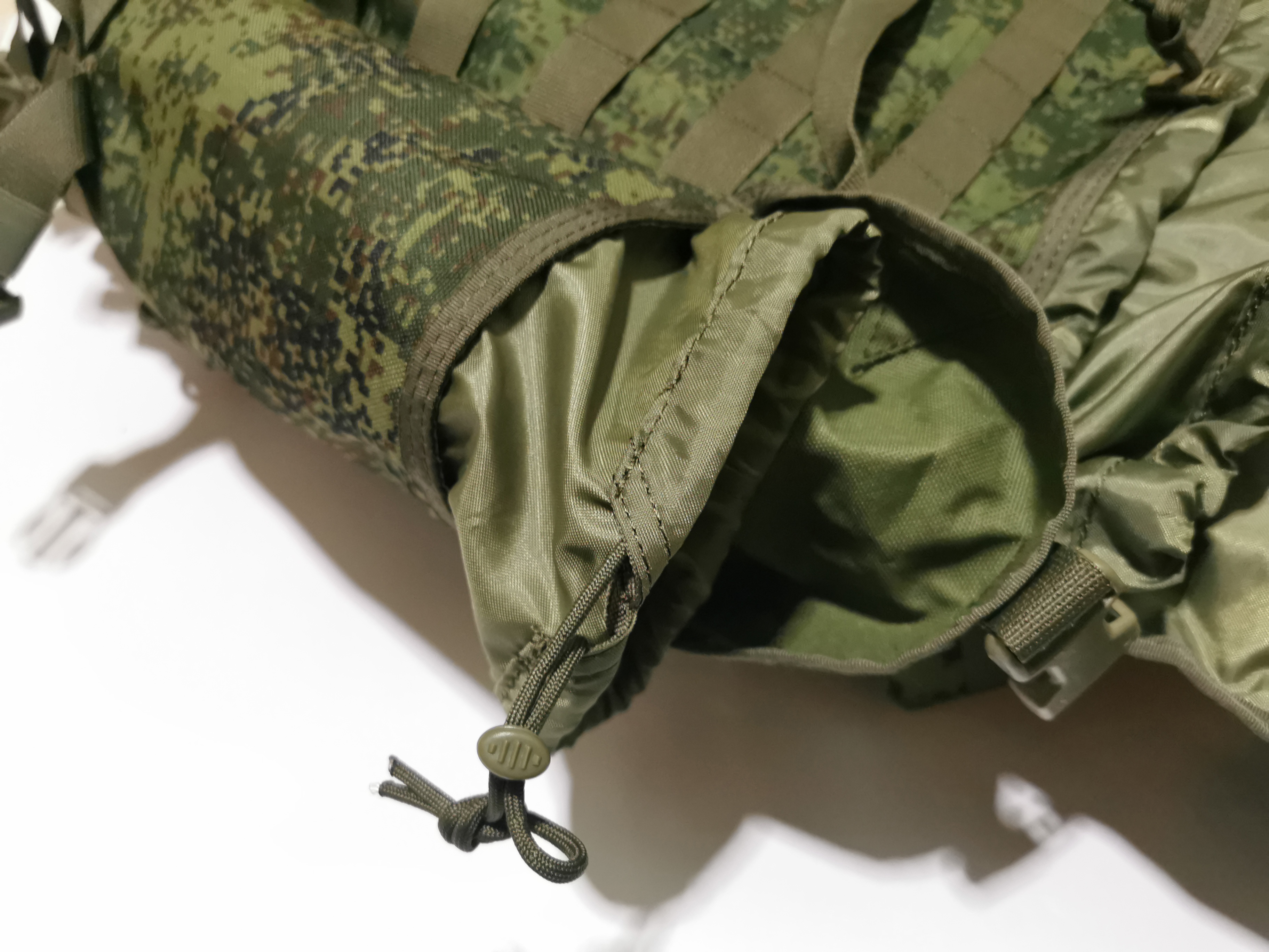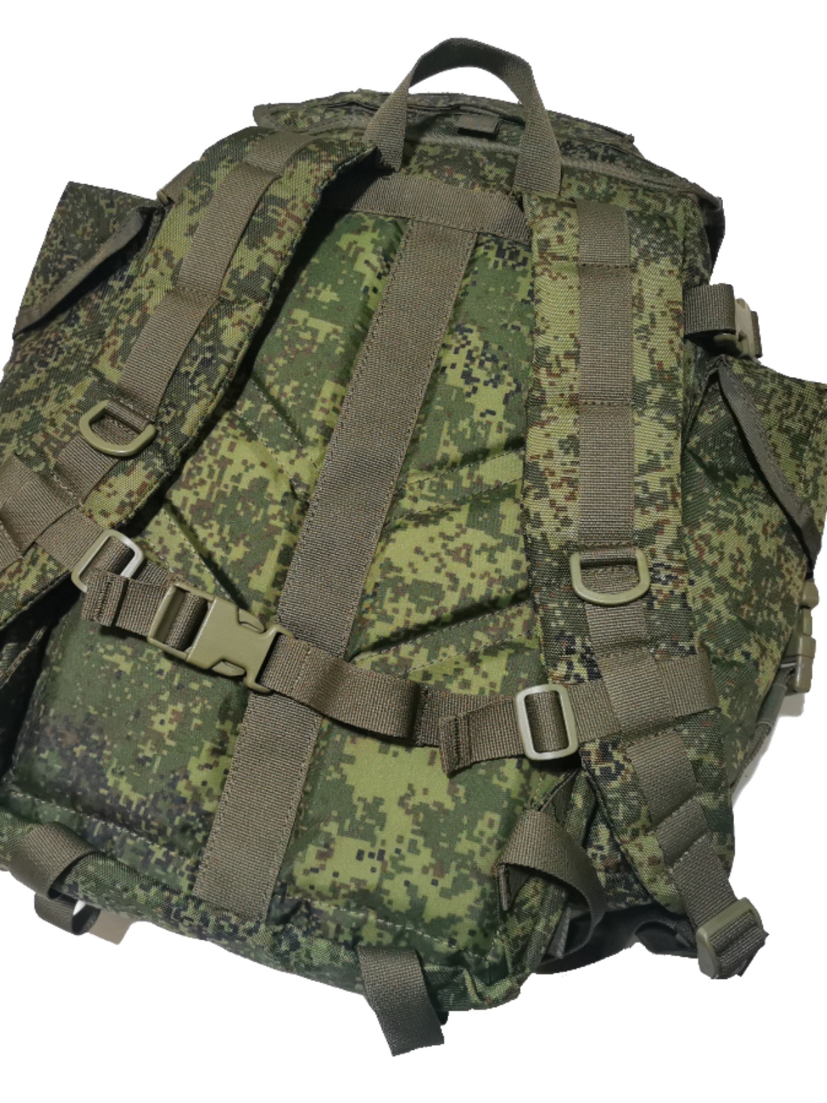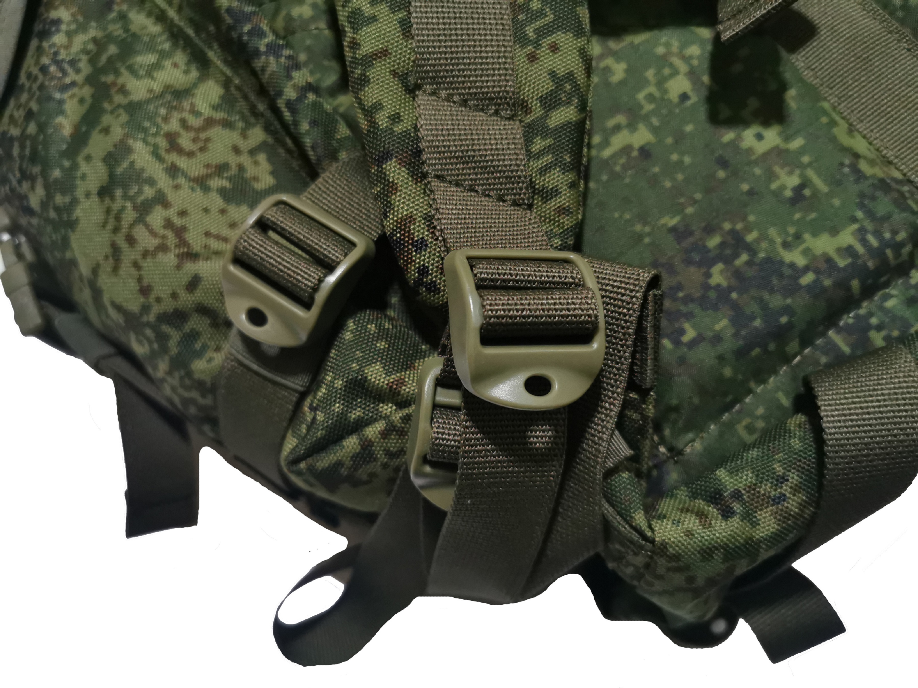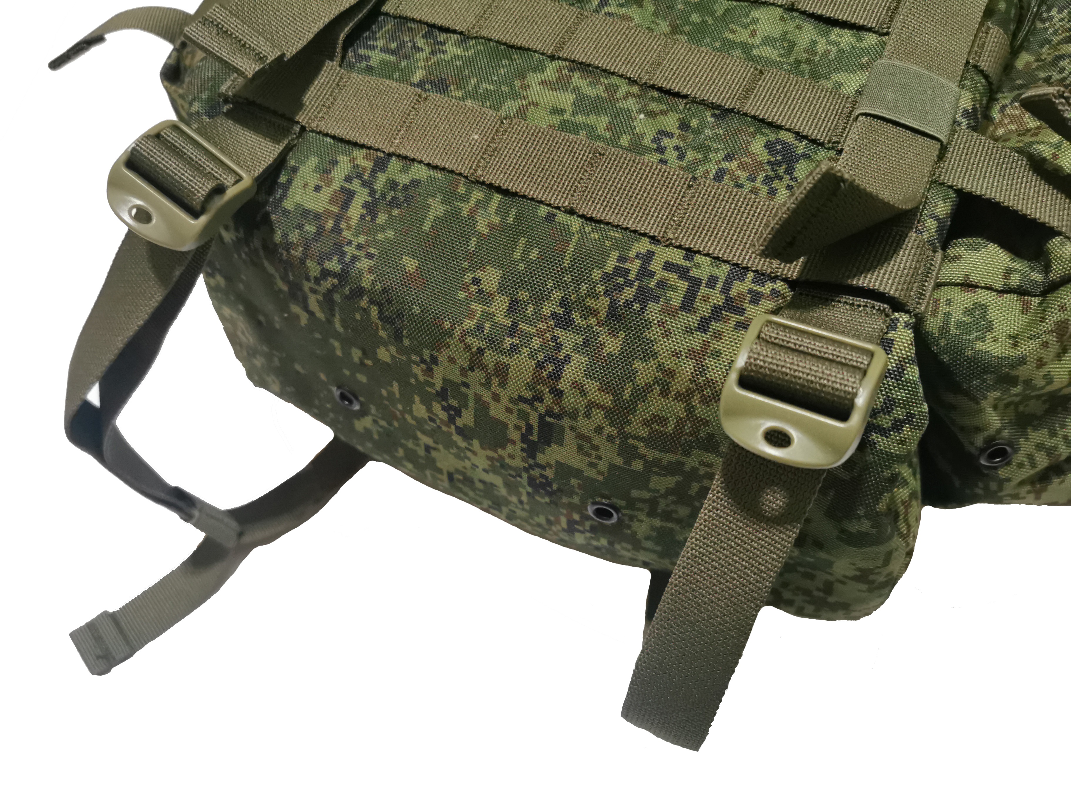面料采用500D,PU防泼水涂层,进口消光织带,扣件改用尼龙材质,解决了俄产的生锈问题,同时轻量化处理,无论材质还是做工品质,都强于俄版。