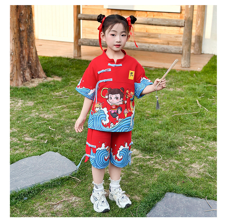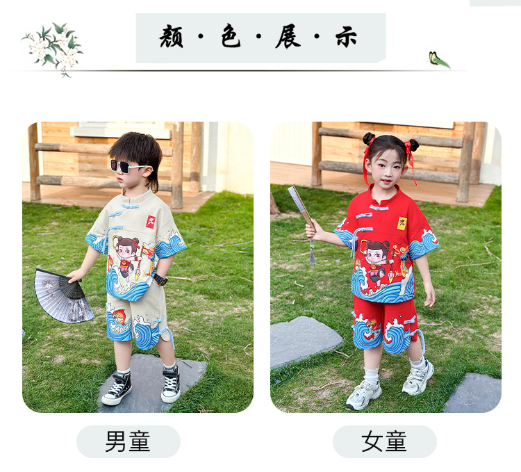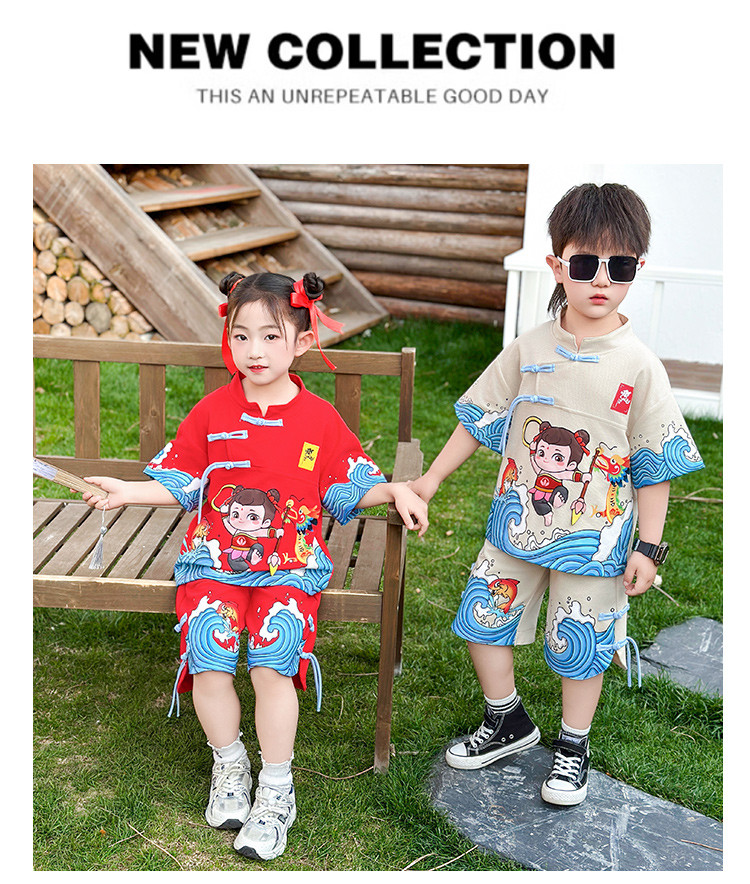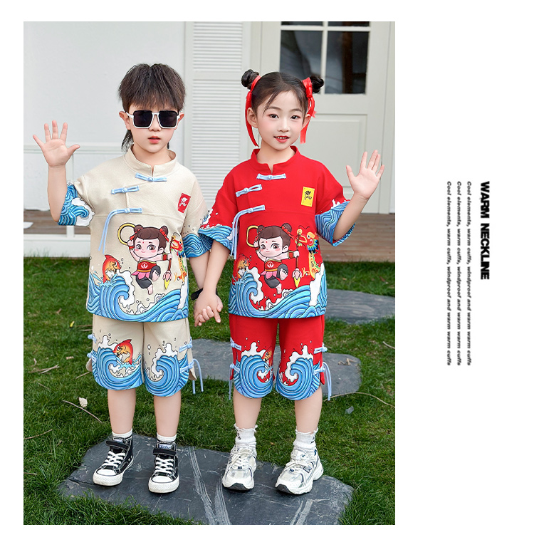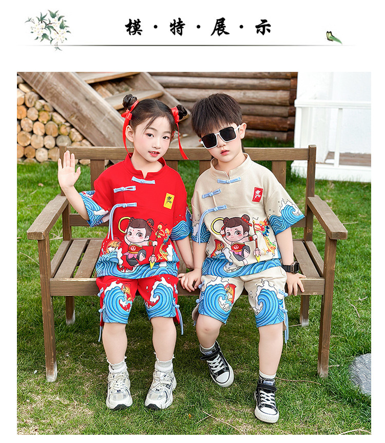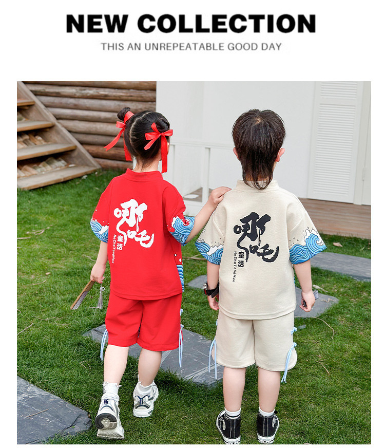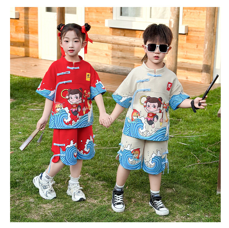 Children's Hanfu Summer Short-Sleeved Outfit, Nezha Clothing for Boys, Chinese Style Summer Clothing for Little Girls, New Chinese-Style Thin Tang Suit