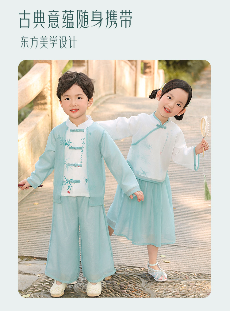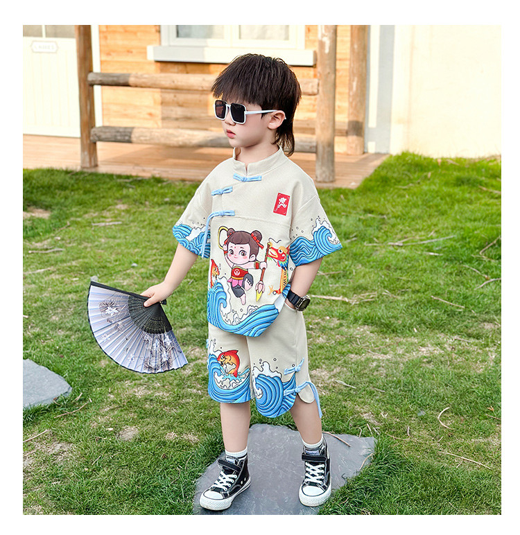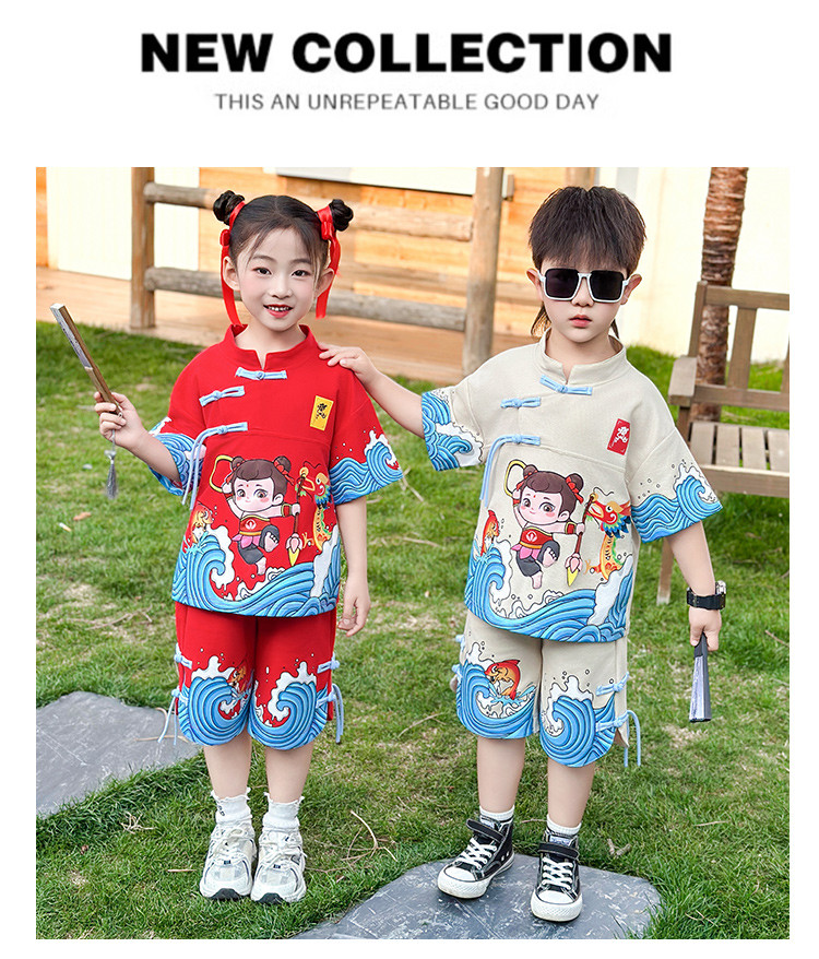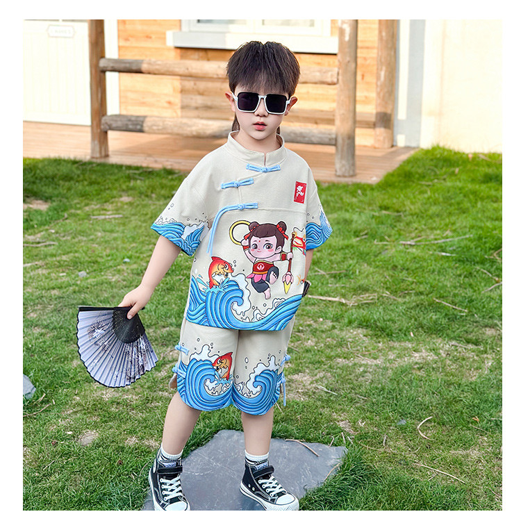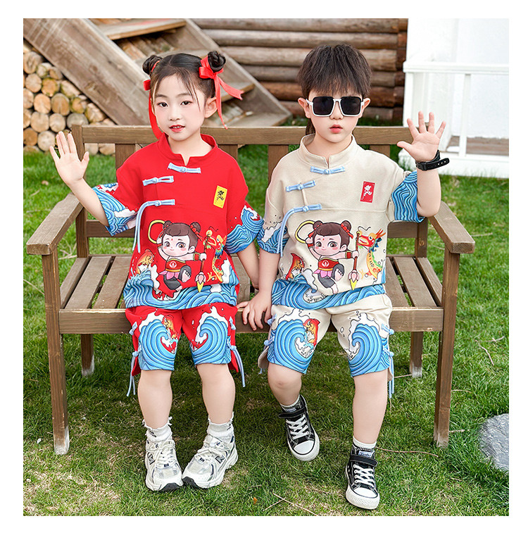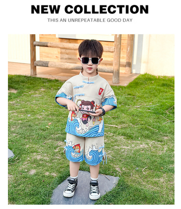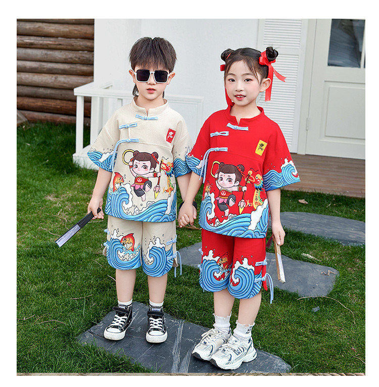 Children's Hanfu Summer Short-Sleeved Outfit, Nezha Clothing for Boys, Chinese Style Summer Clothing for Little Girls, New Chinese-Style Thin Tang Suit