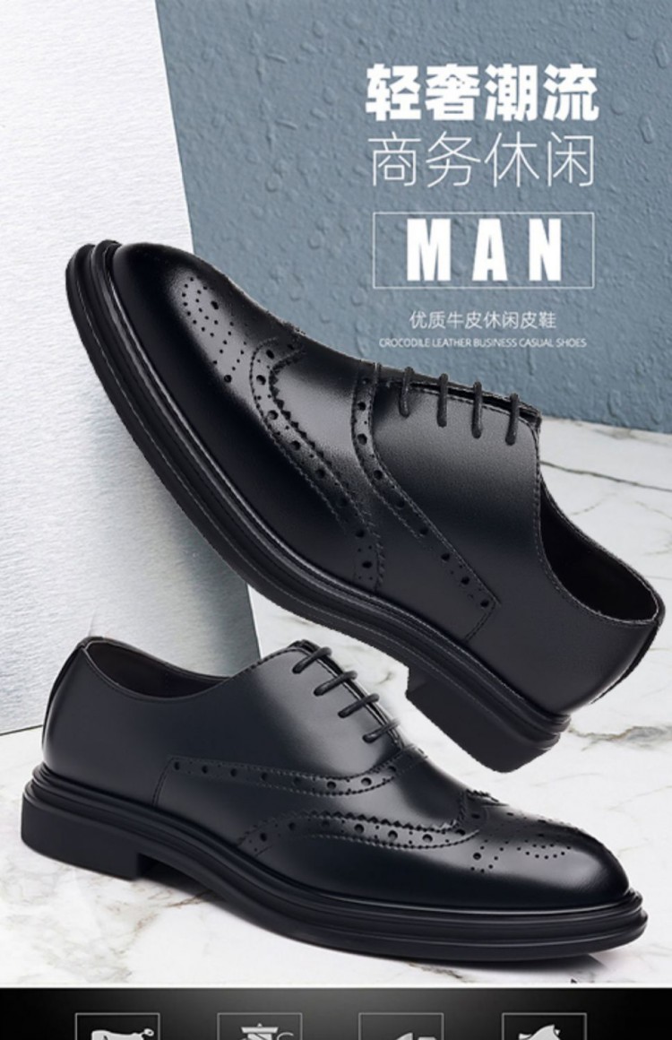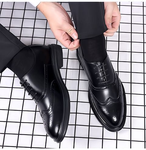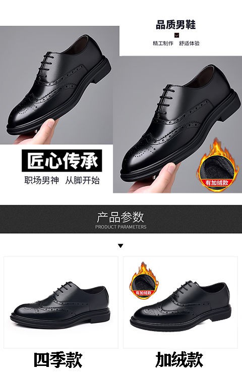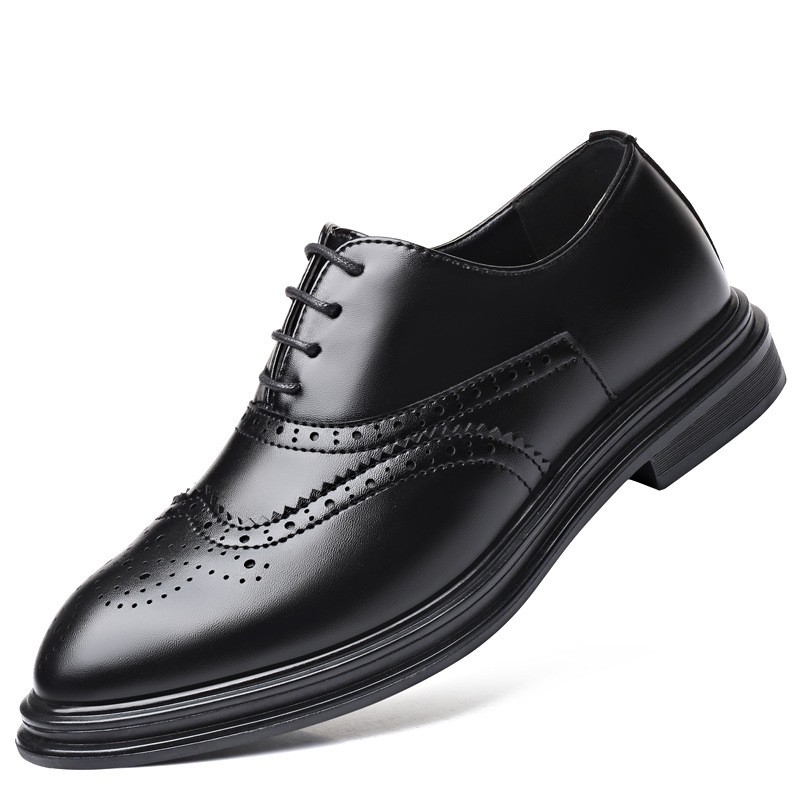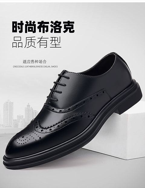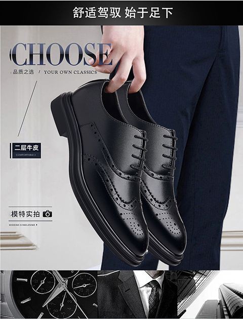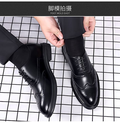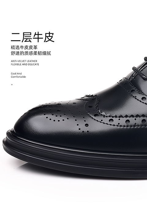 Brogue Leather Shoes Men's Formal Business Genuine Leather Breathable British Casual Inner Heightening Wedding Groom Work Shoes