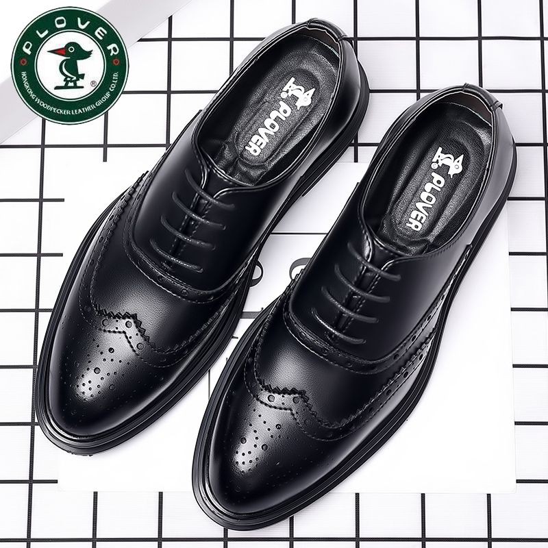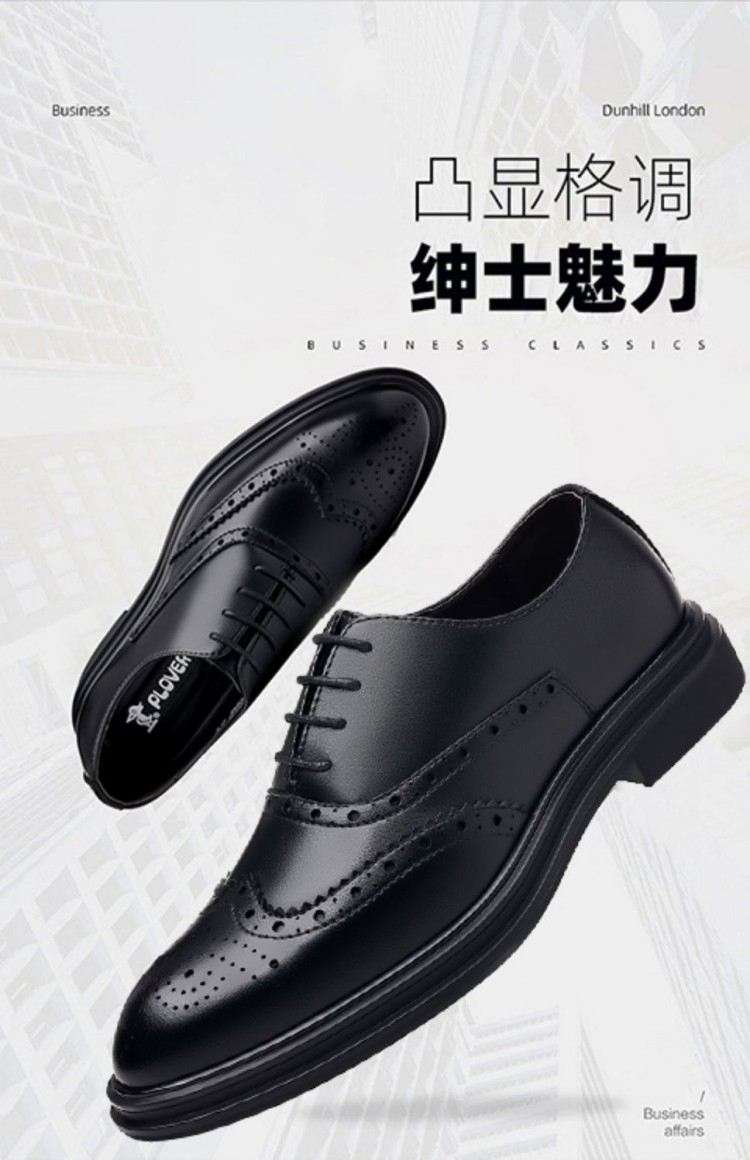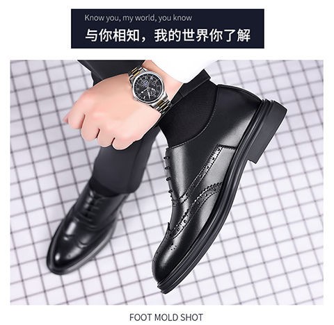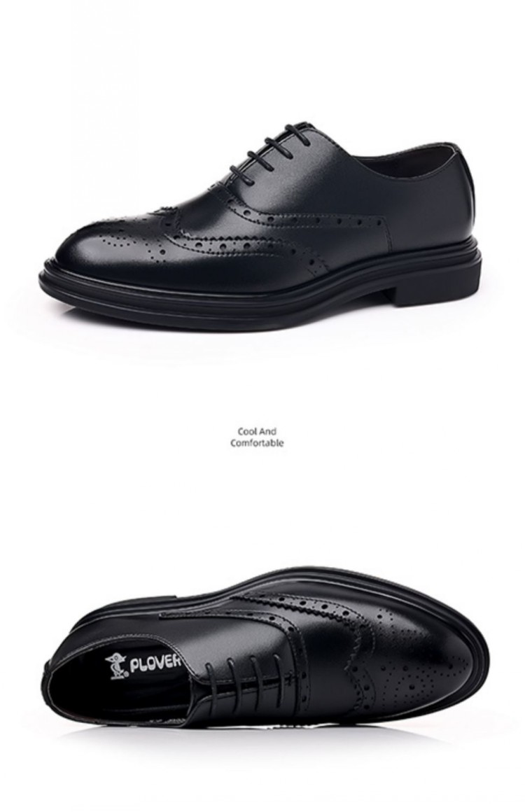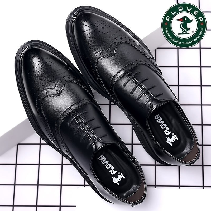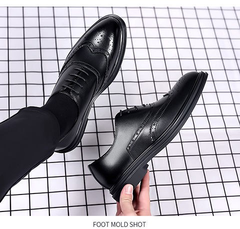 Brogue Leather Shoes Men's Formal Business Genuine Leather Breathable British Casual Inner Heightening Wedding Groom Work Shoes