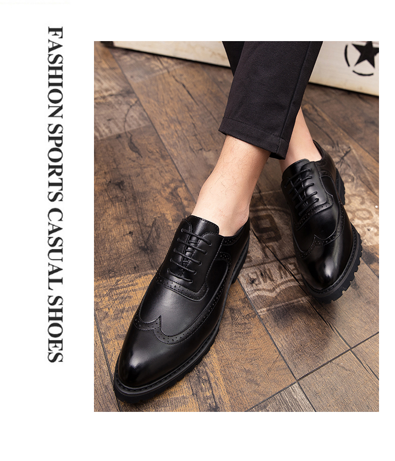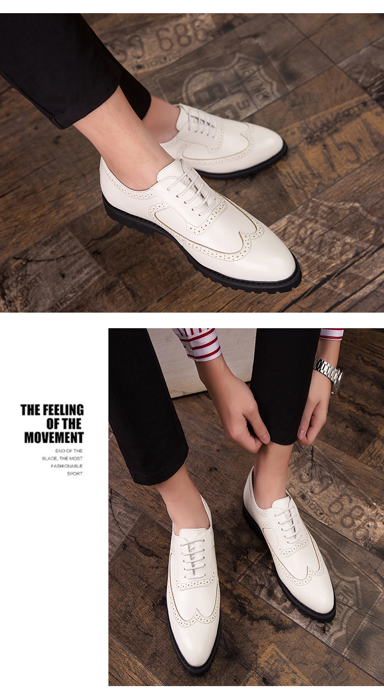 Boys' Leather Shoes Korean Style Men's Formal Photo Studio Wedding Photo Shoot White Large Size British Casual Brogue Men's Shoes