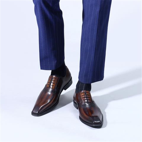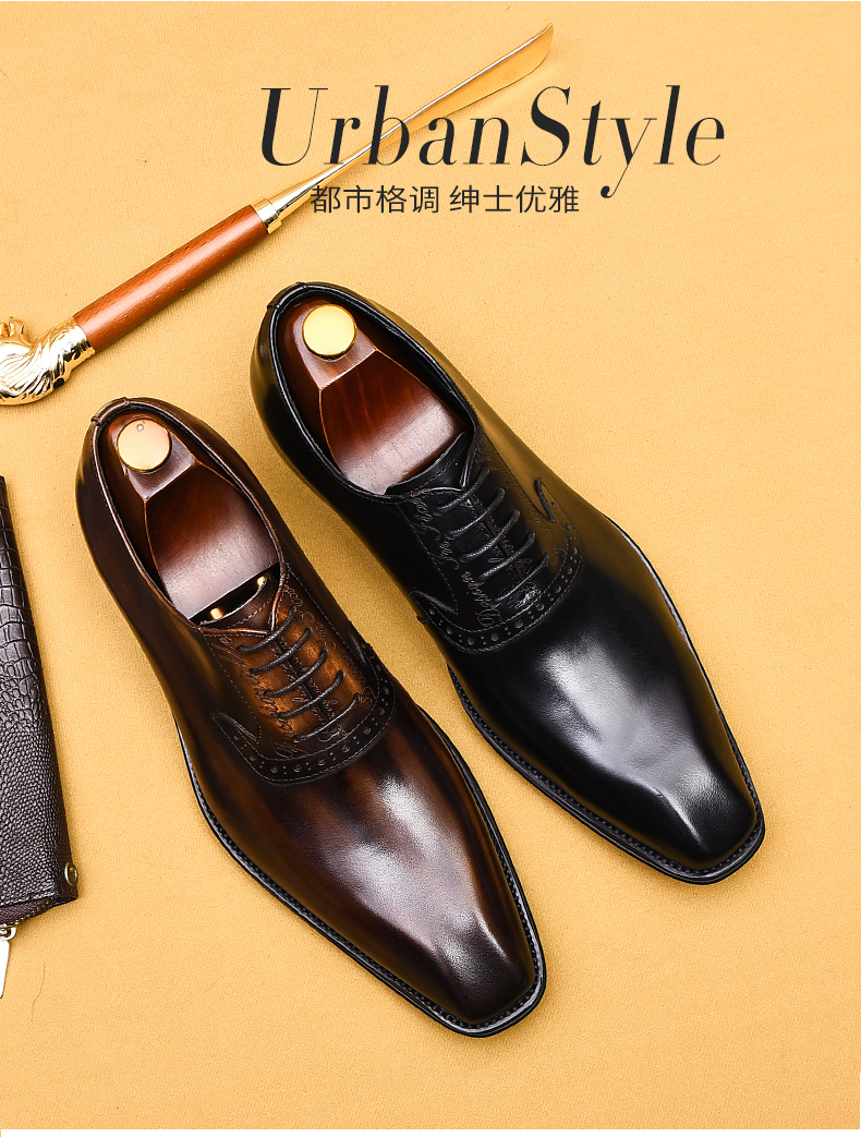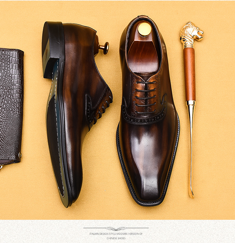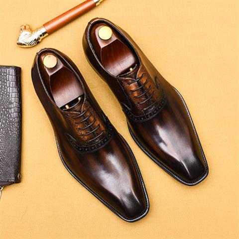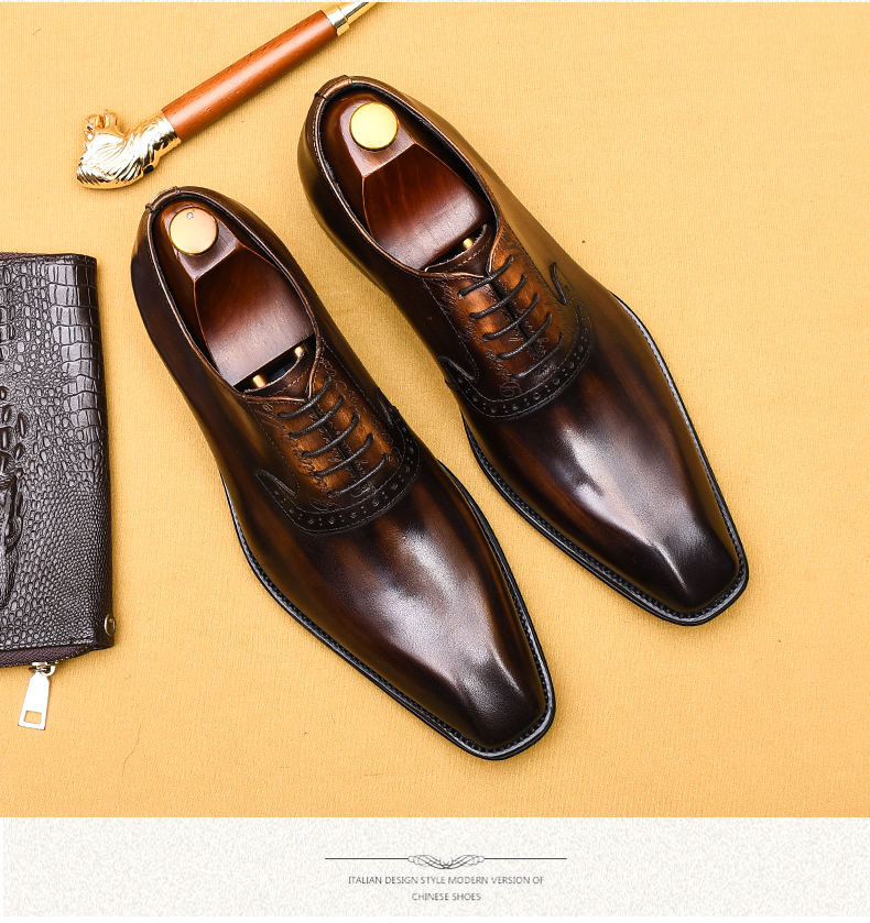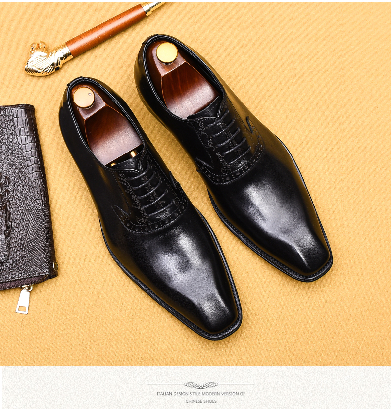 Men Leather Shoes Shoelace Dress Shoes Genuine Leather British Pointed Oxford Shoes Wedding Groom Shoes New arrival Business Men's Shoes