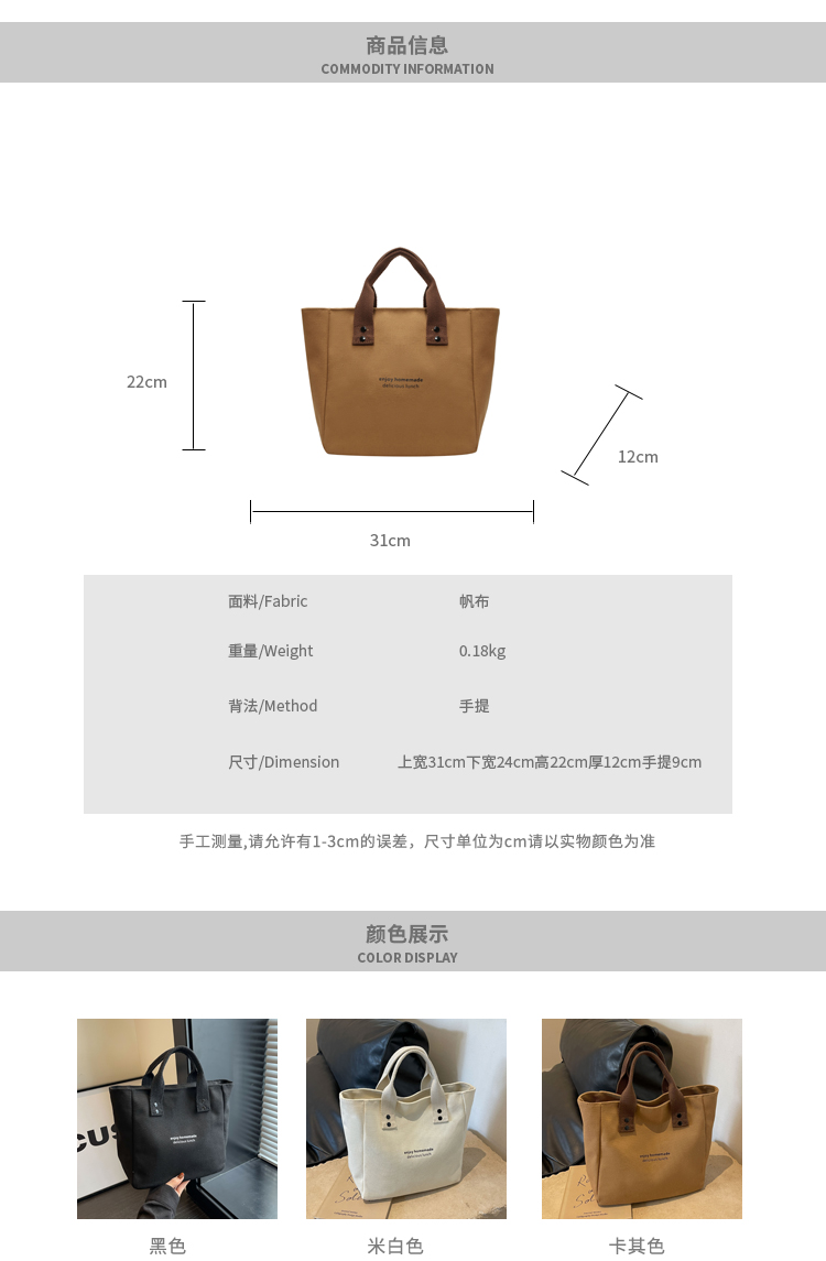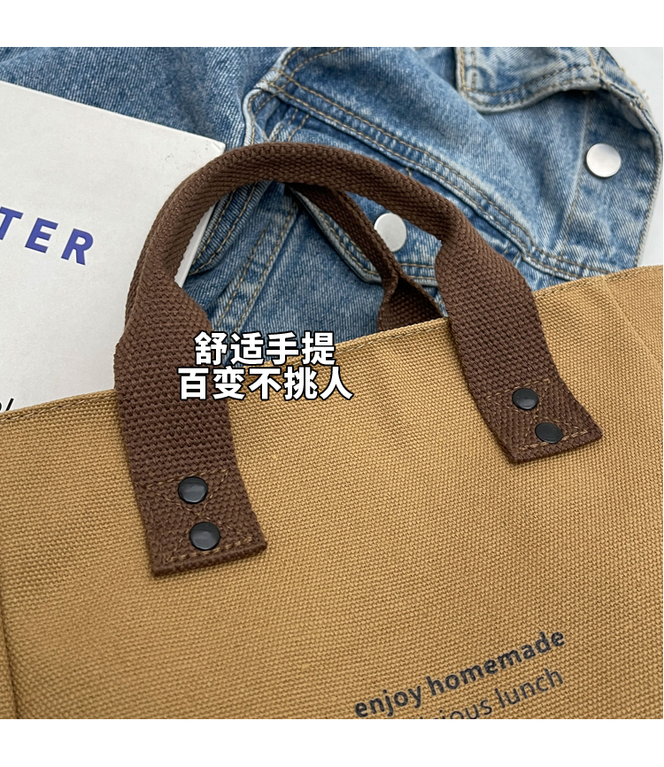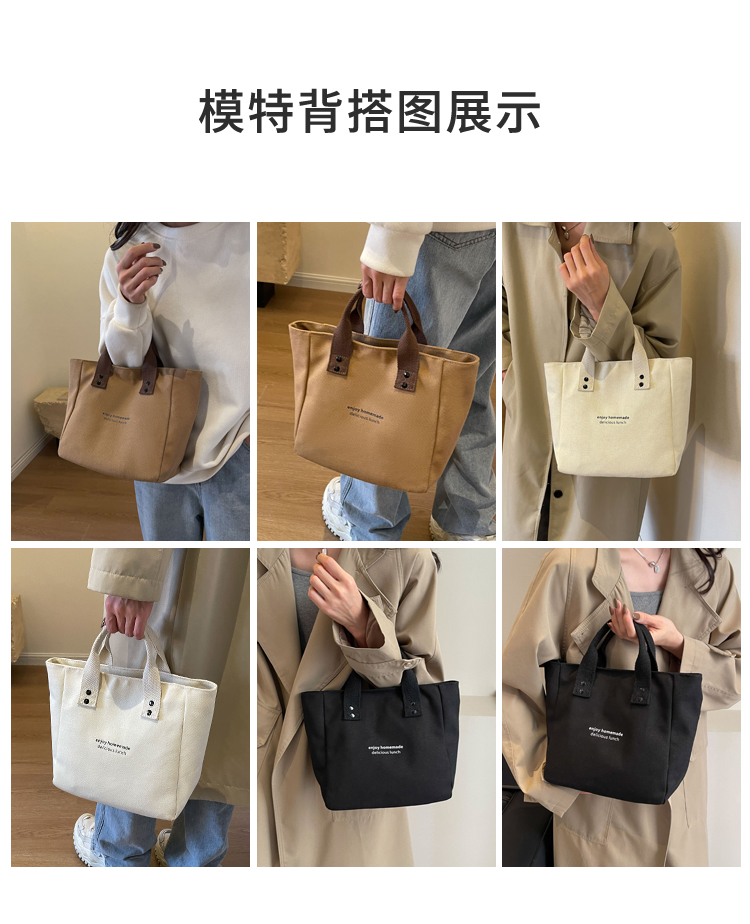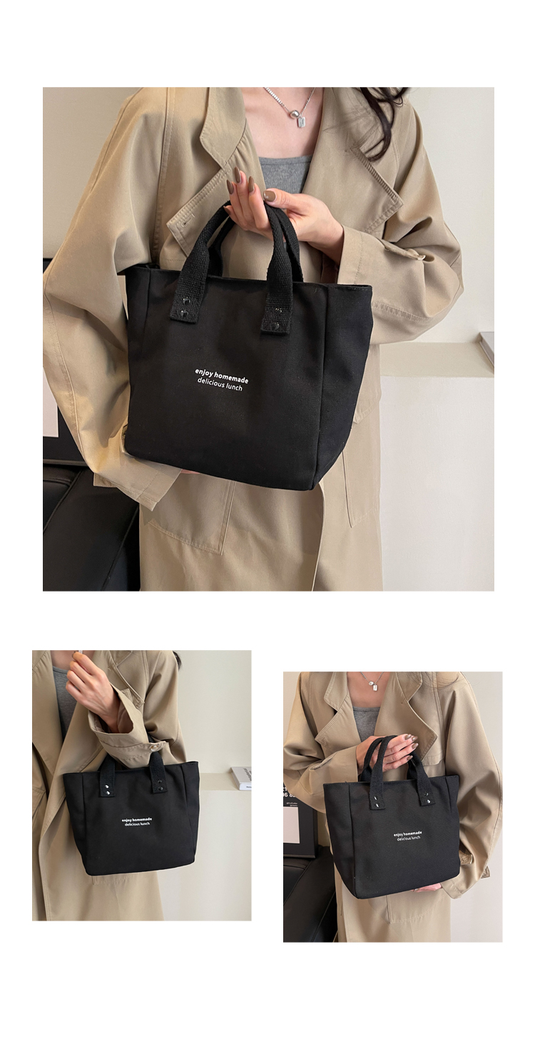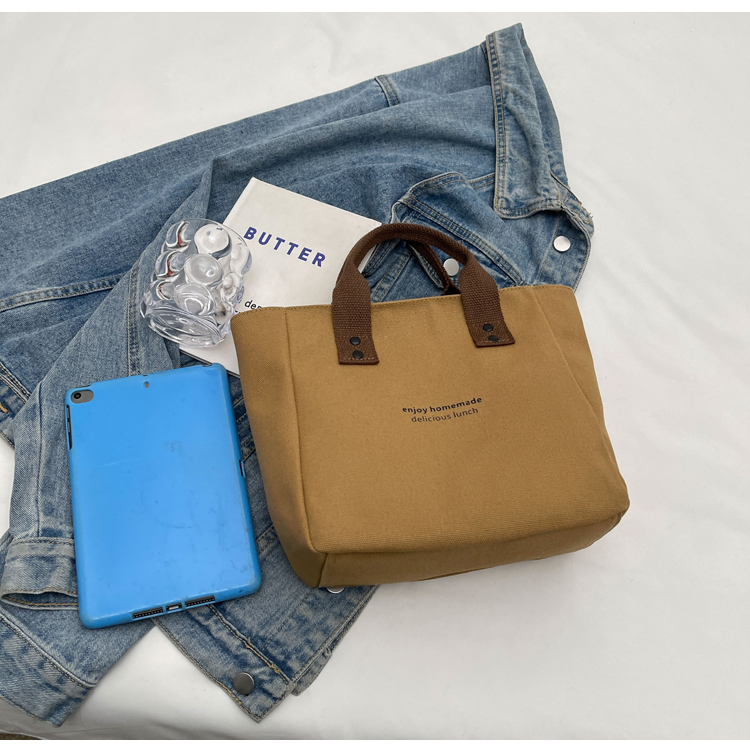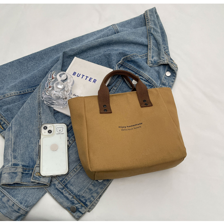 Canvas Handbag with Japanese Lunch Bag for Office Workers to Take Out with Them, Simple Contrasting Color Fashionable Handbag Lunch Box Bag