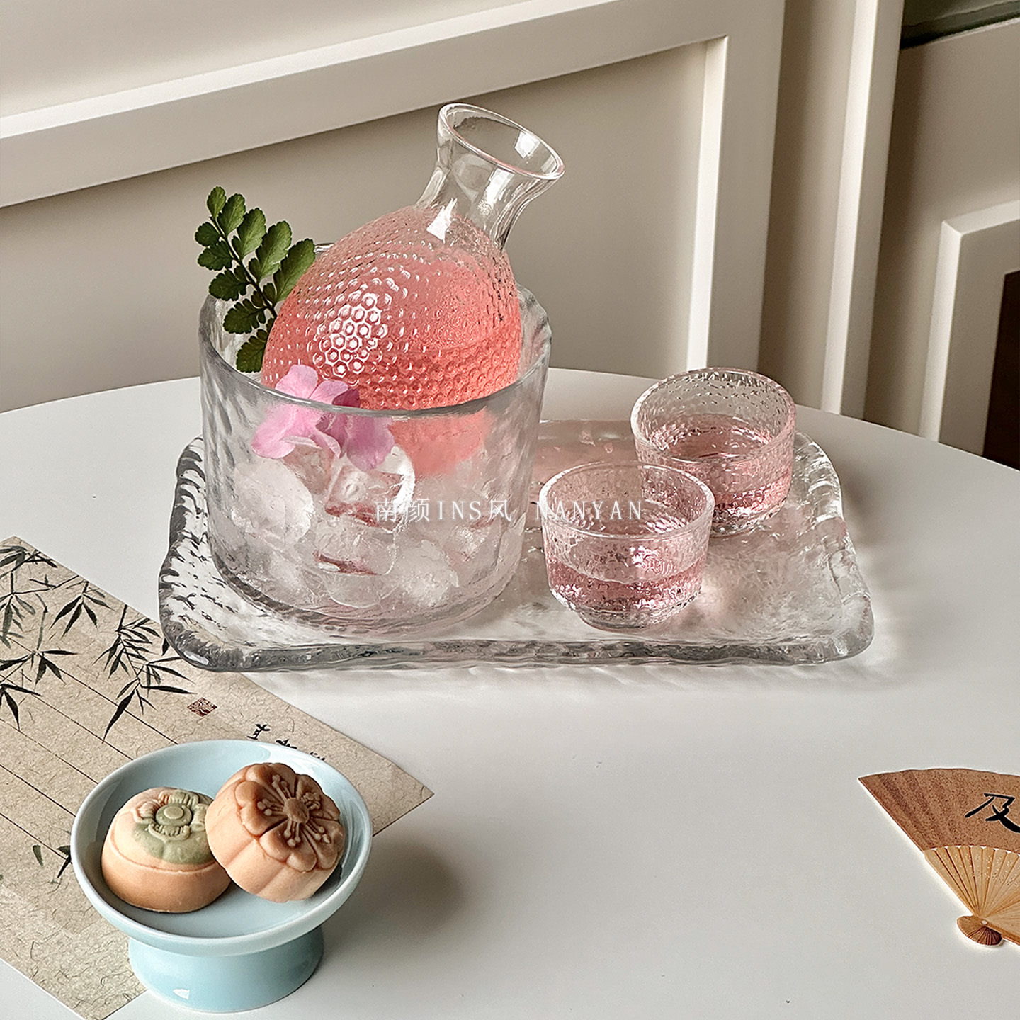 Japanese-Style Hammered Sake Pot Set, Household Wine and Tea Set, Teapot, Teacup, 0.05kg White Wine Glasses, Glass Cup