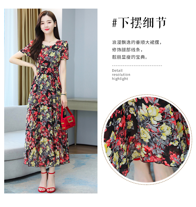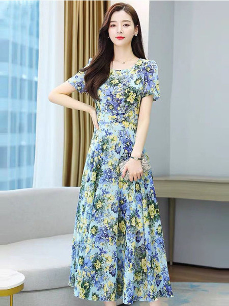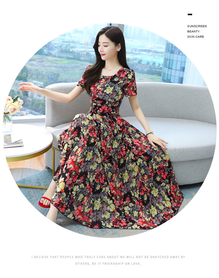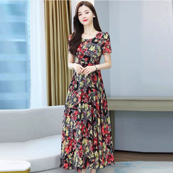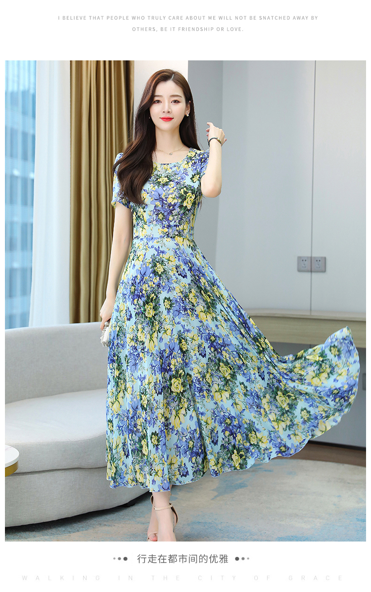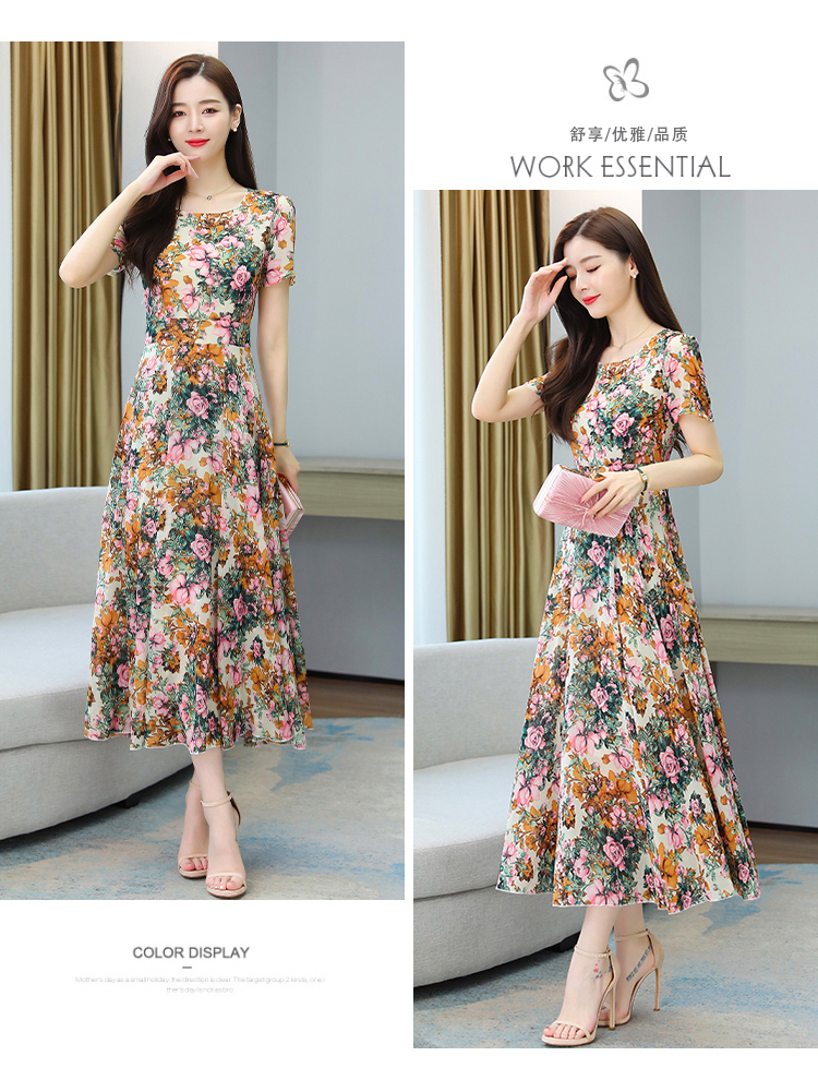 Big Sale Clearance ~ Mother's Wear Floral Ice Silk Dress Summer New High-End Age-Reducing Elegant Long Skirt