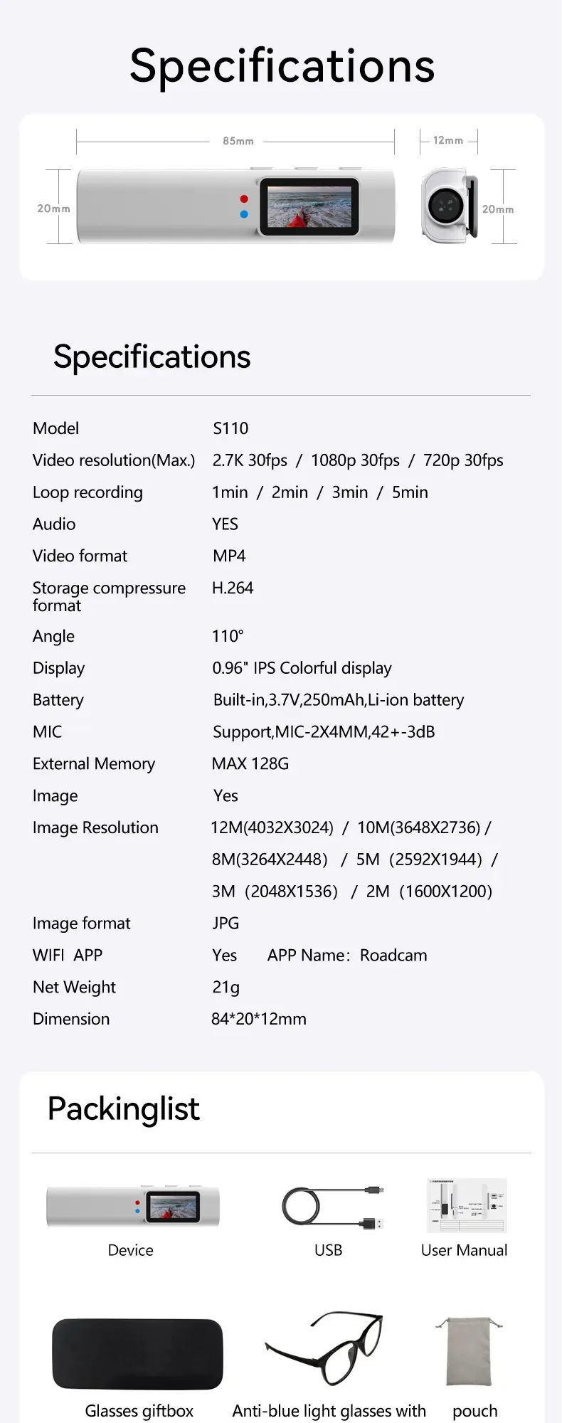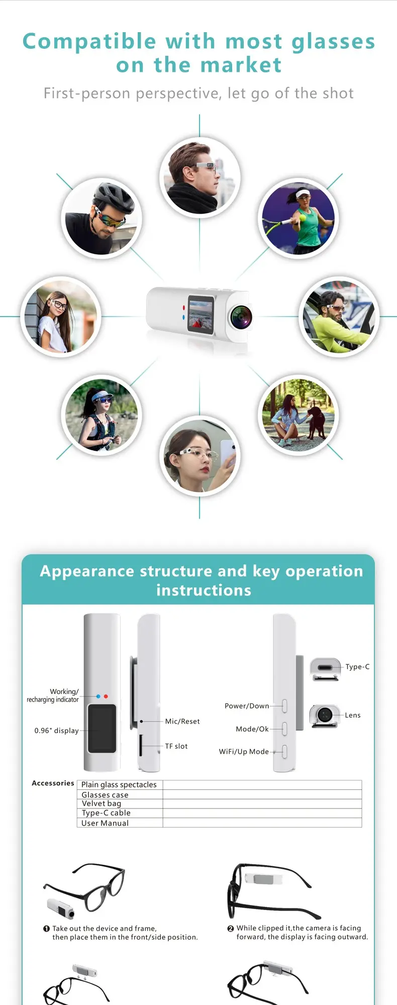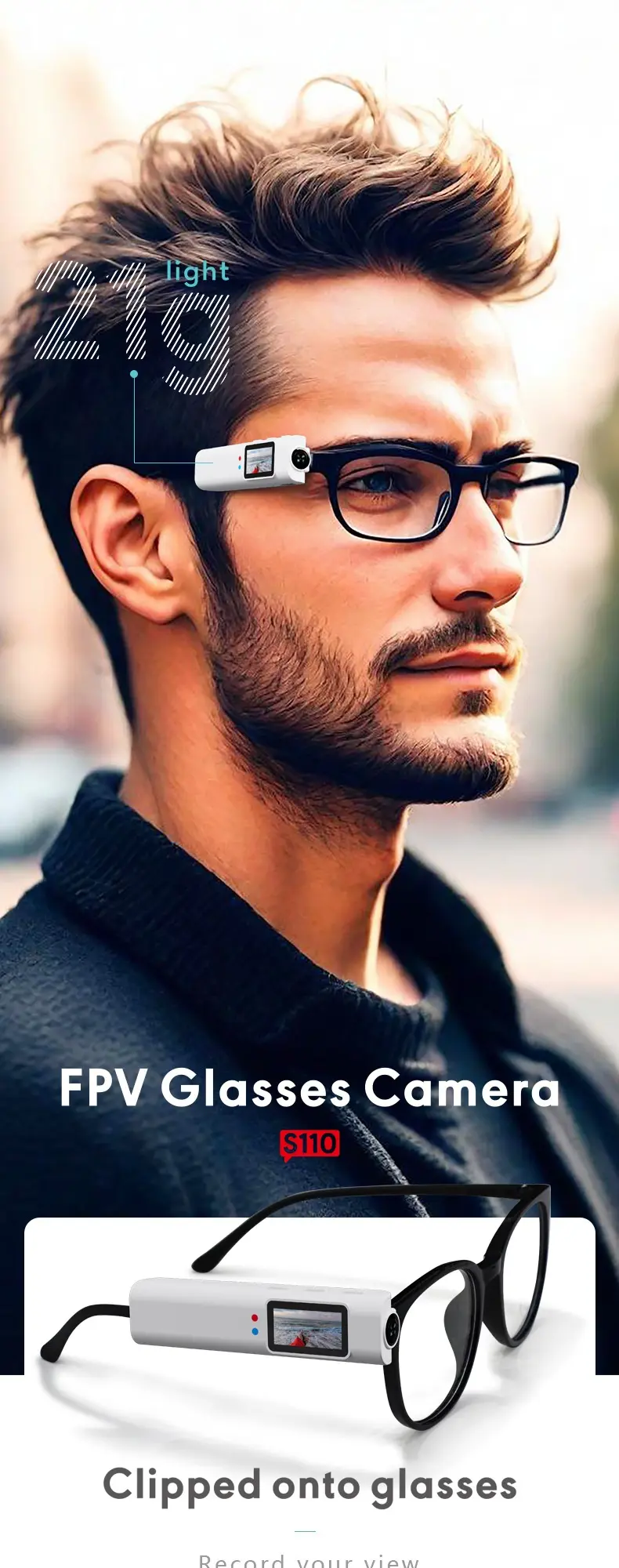 Sports camera glasses1080PHD WiFi AntiShock Cycling/Skiing