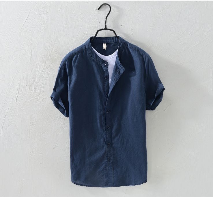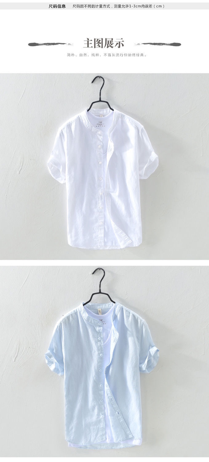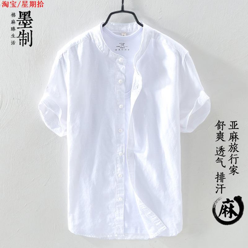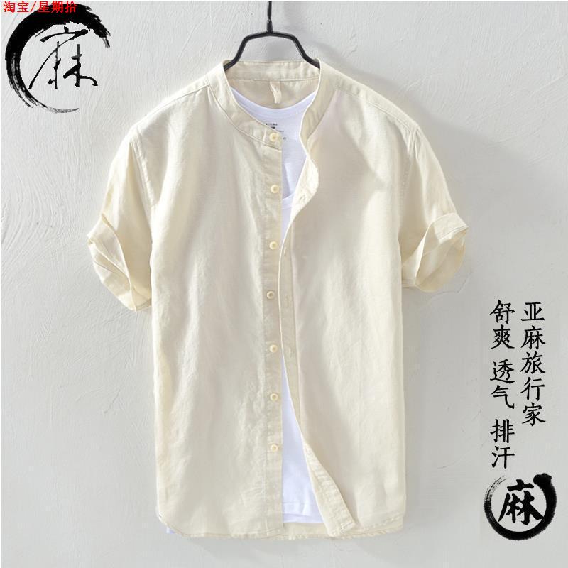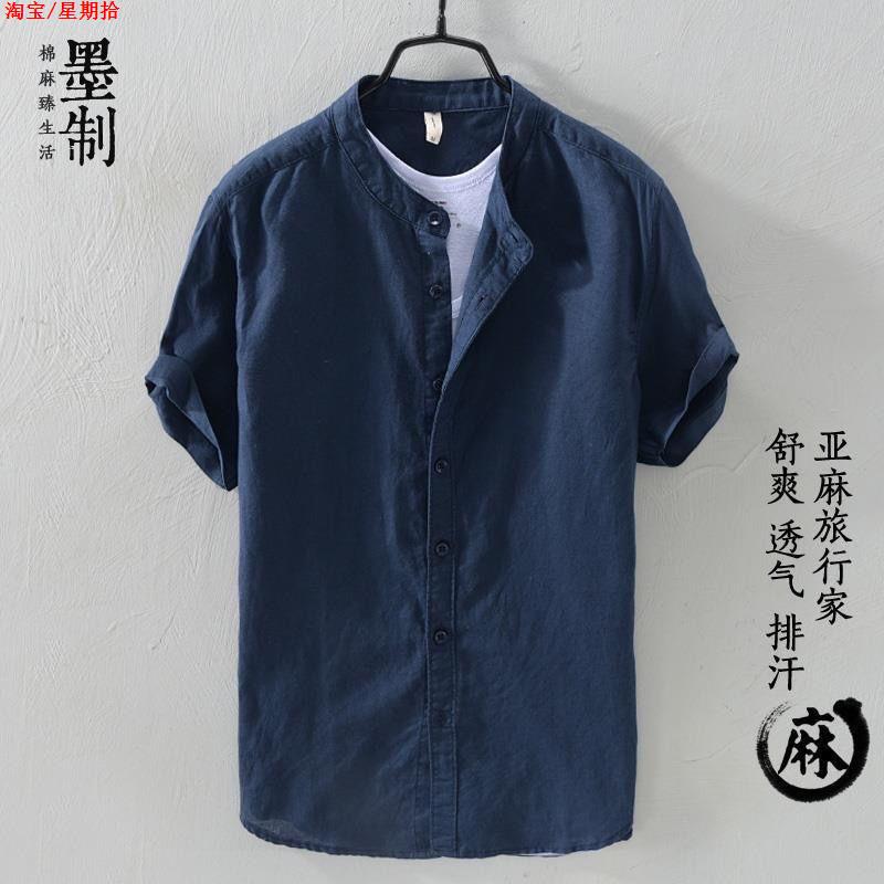 Chinese Style Linen Material Men's 2024 New arrival Summer Cotton Linen Short-sleeved Collar Shirt Trendy Men T-shirt for Men