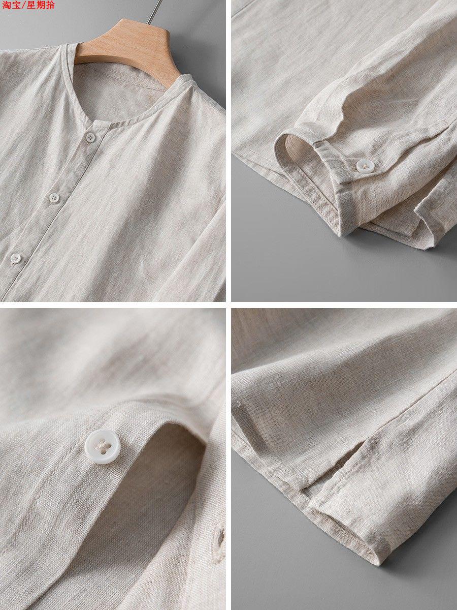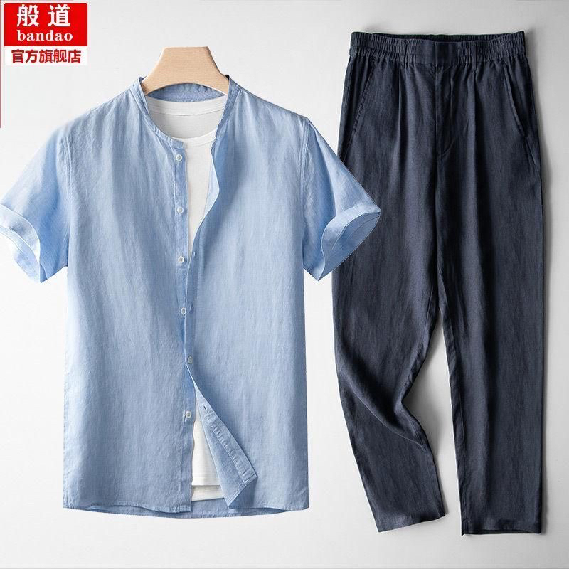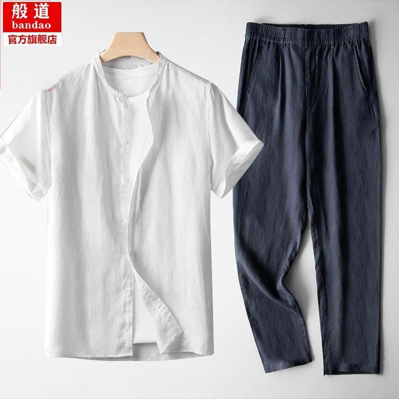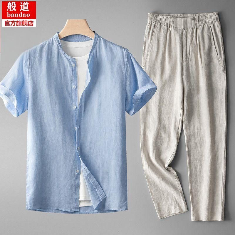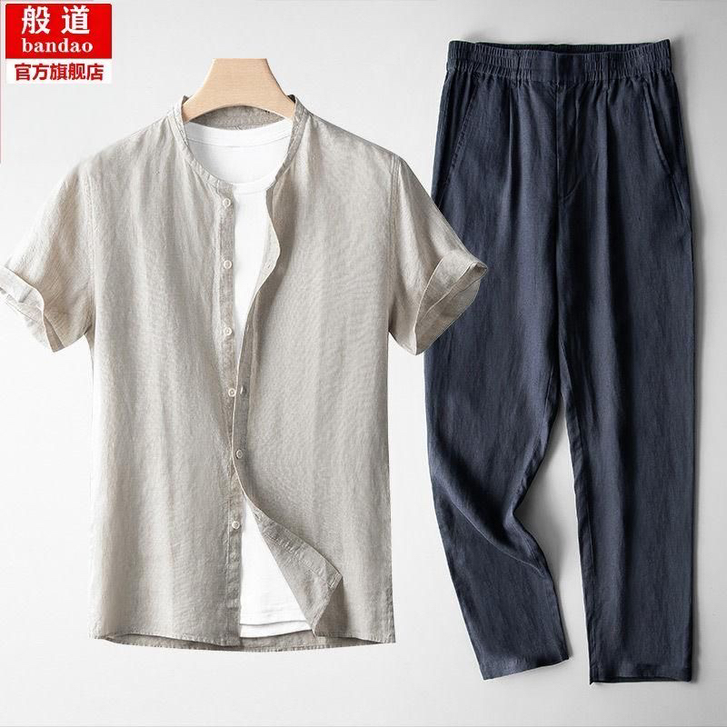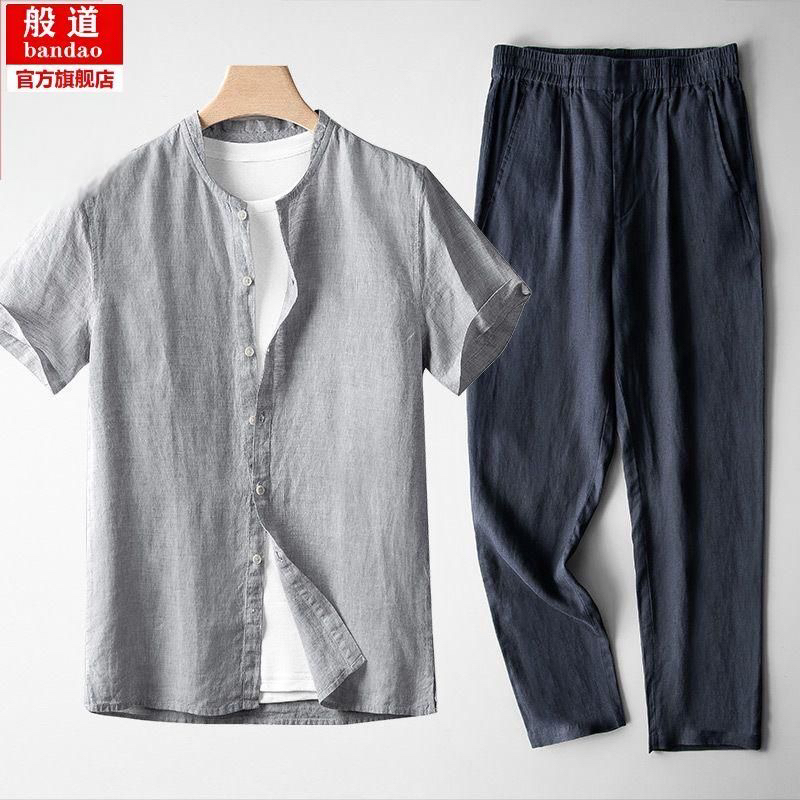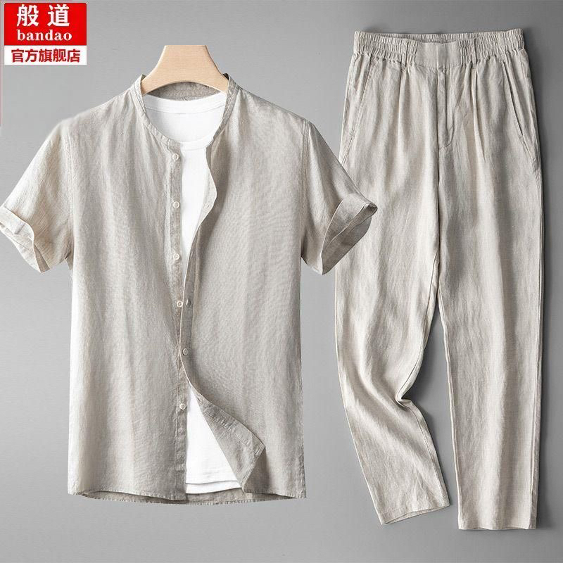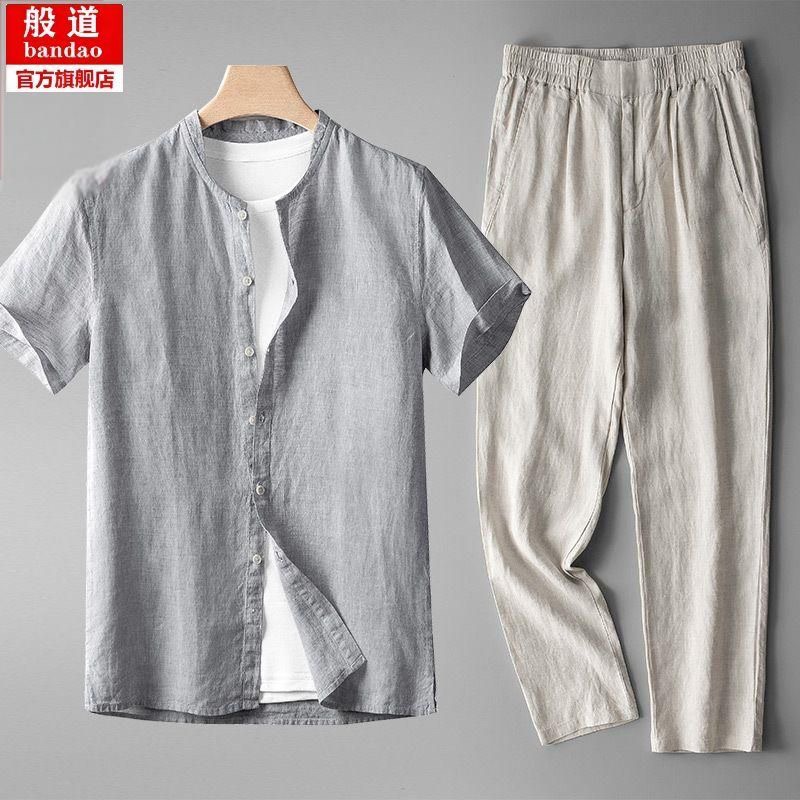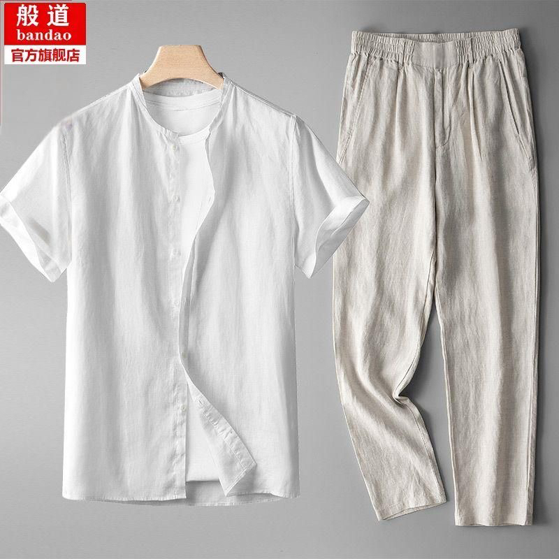 Linen Shirt Men's Spring & Fall Summer Long-Sleeved Thin Casual Loose Cotton and Linen Shirt Pants Men's Linen Suit
