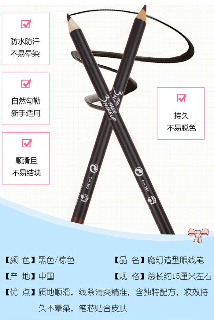 Full Hot wholesale Lilaiya eyebrow pencil eyeliner easy to color Waterproof easy to remove black coffee White 15cm long