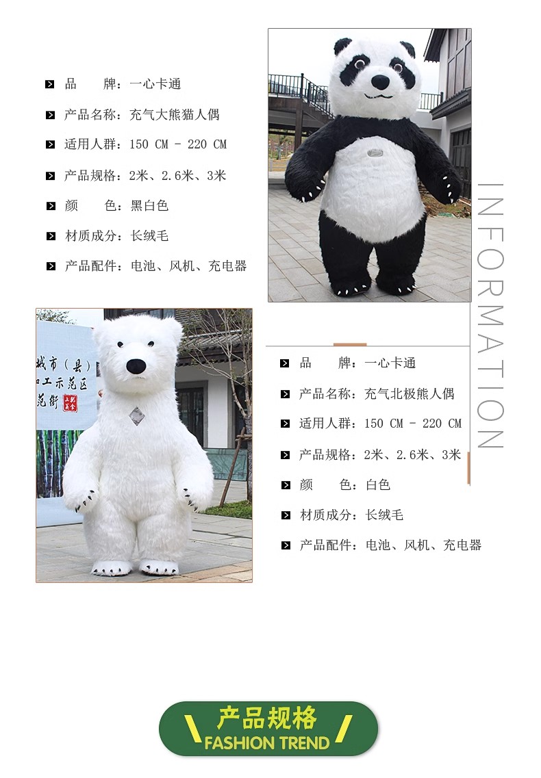 Liaoning Popular Inflatable Giant Panda Cartoon Doll Costume Polar Bear Tiger Costume Christmas Activity Performance Doll Costume