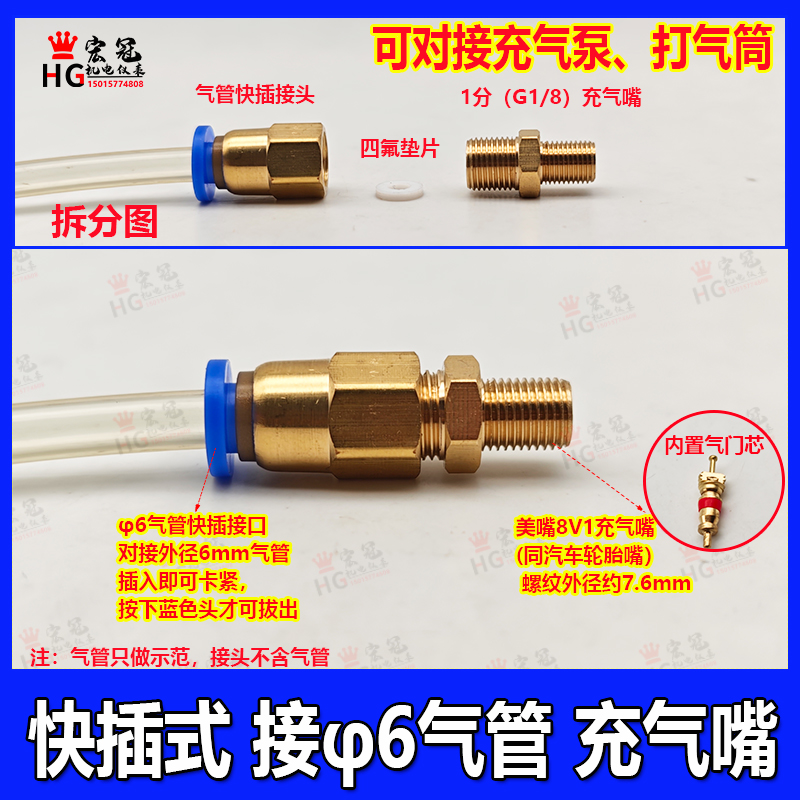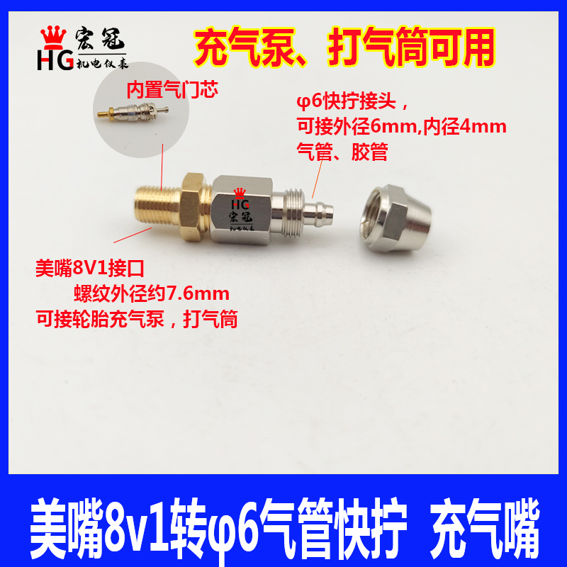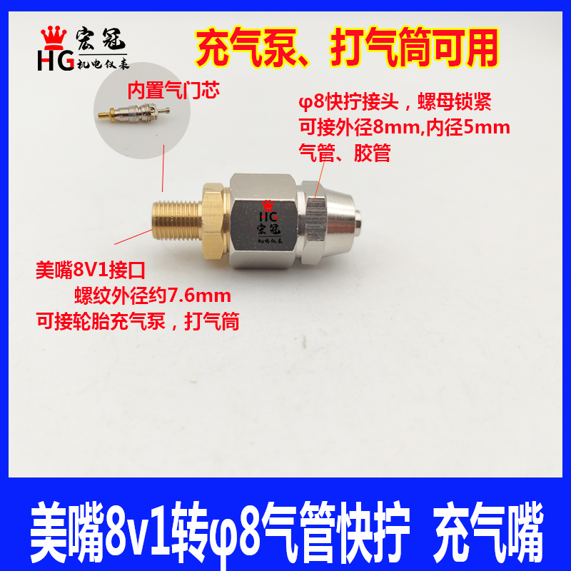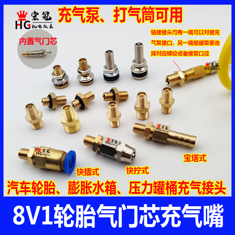 Car Tire Valve Core Inflation Nozzle 8V1 Container Expansion Water Tank Nozzle Pressure Tank Barrel Pressure Inflator Pump Connector