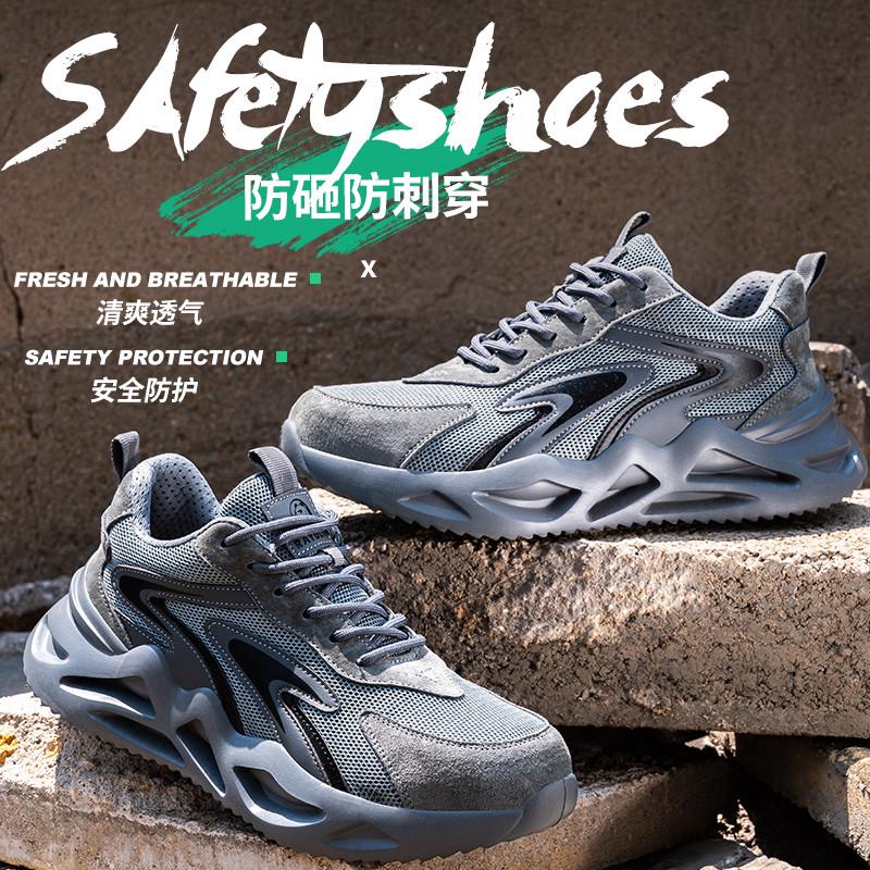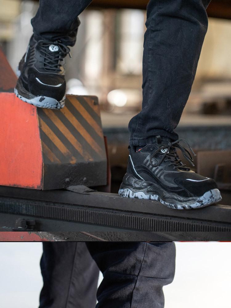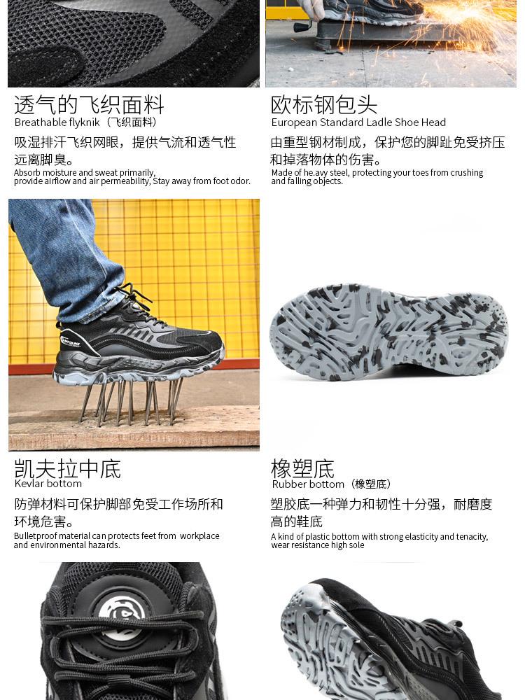 Lightweight Safety Shoes Men Breathable Deodorizing Filter Abrasion Resistant Steel Toe Anti-Smash and Puncture-resistant Work Shoes for Site Safety IV