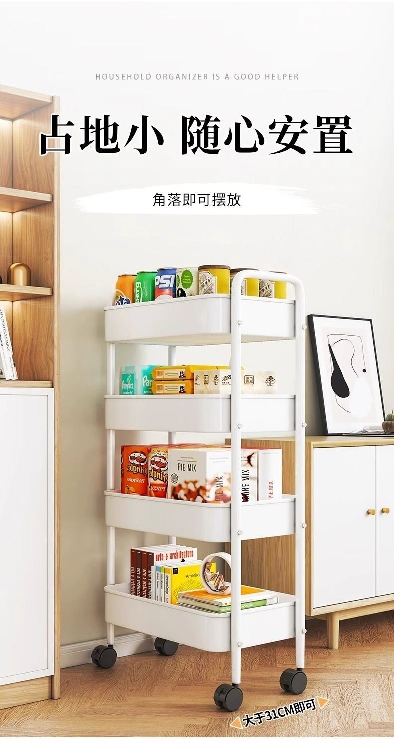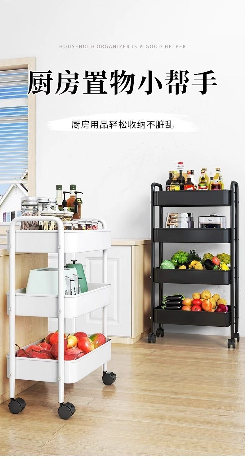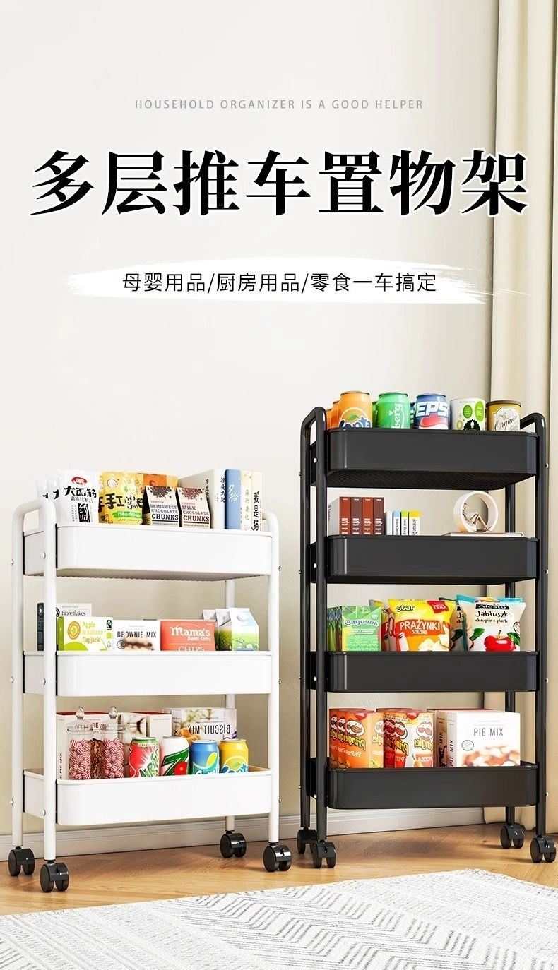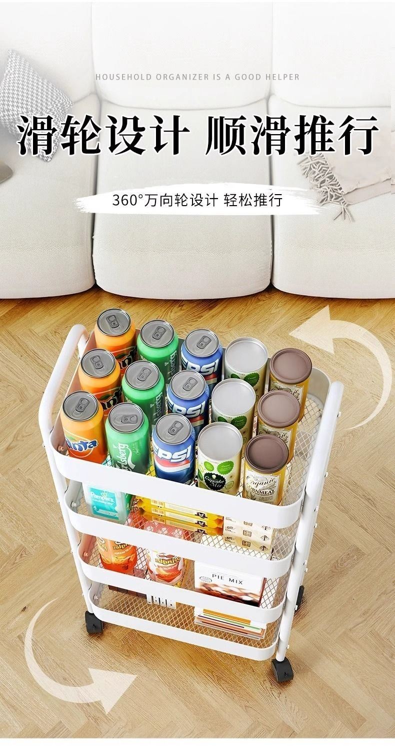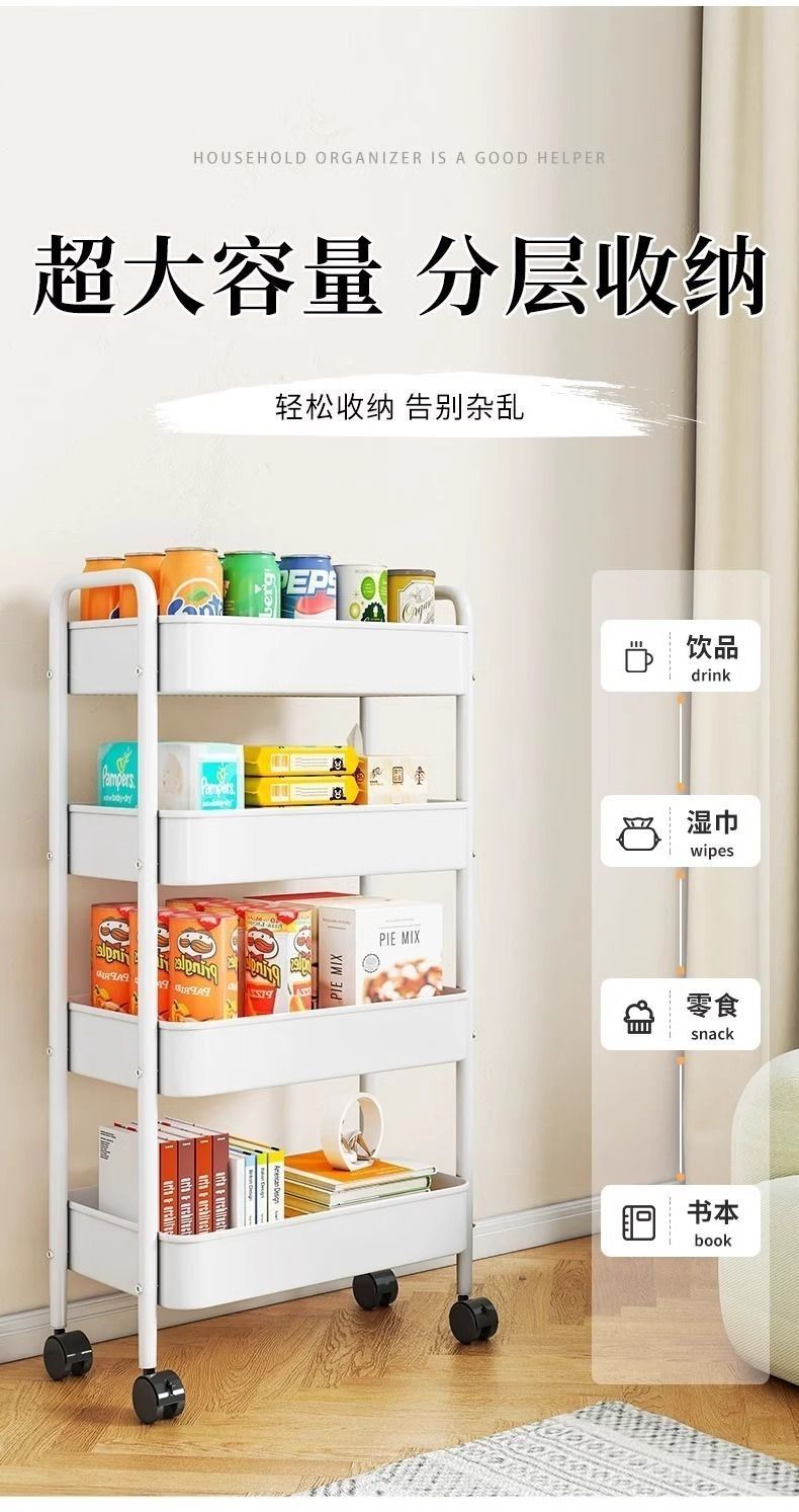 Trolley Storage Rack Kitchen Floor Bedroom Multi-Layer Snack Movable Bathroom Toilet Bedside Storage Rack
