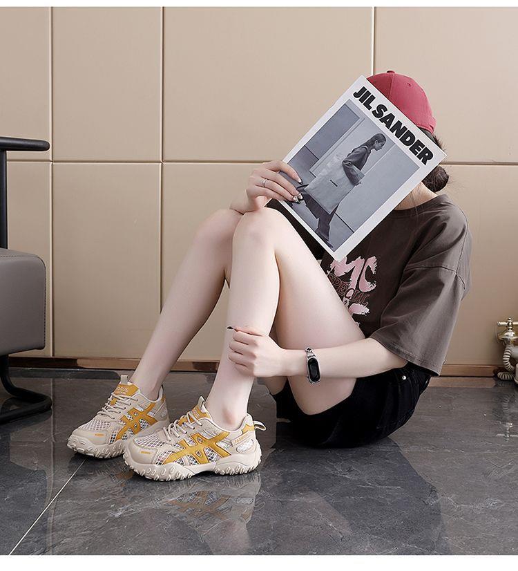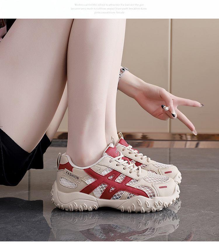 Internet Celebrity Women's Shoes Summer Single Mesh Shoes 2025 New Heightening White Shoes Women's Versatile Breathable Mesh Lightweight Dad Shoes