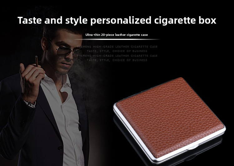 KUBOY Boutique Imitation Leather Metal Cigarette Case 20 Whole Cigarette Box Moisture-proof Anti-pressure Leather Cigarette Clip