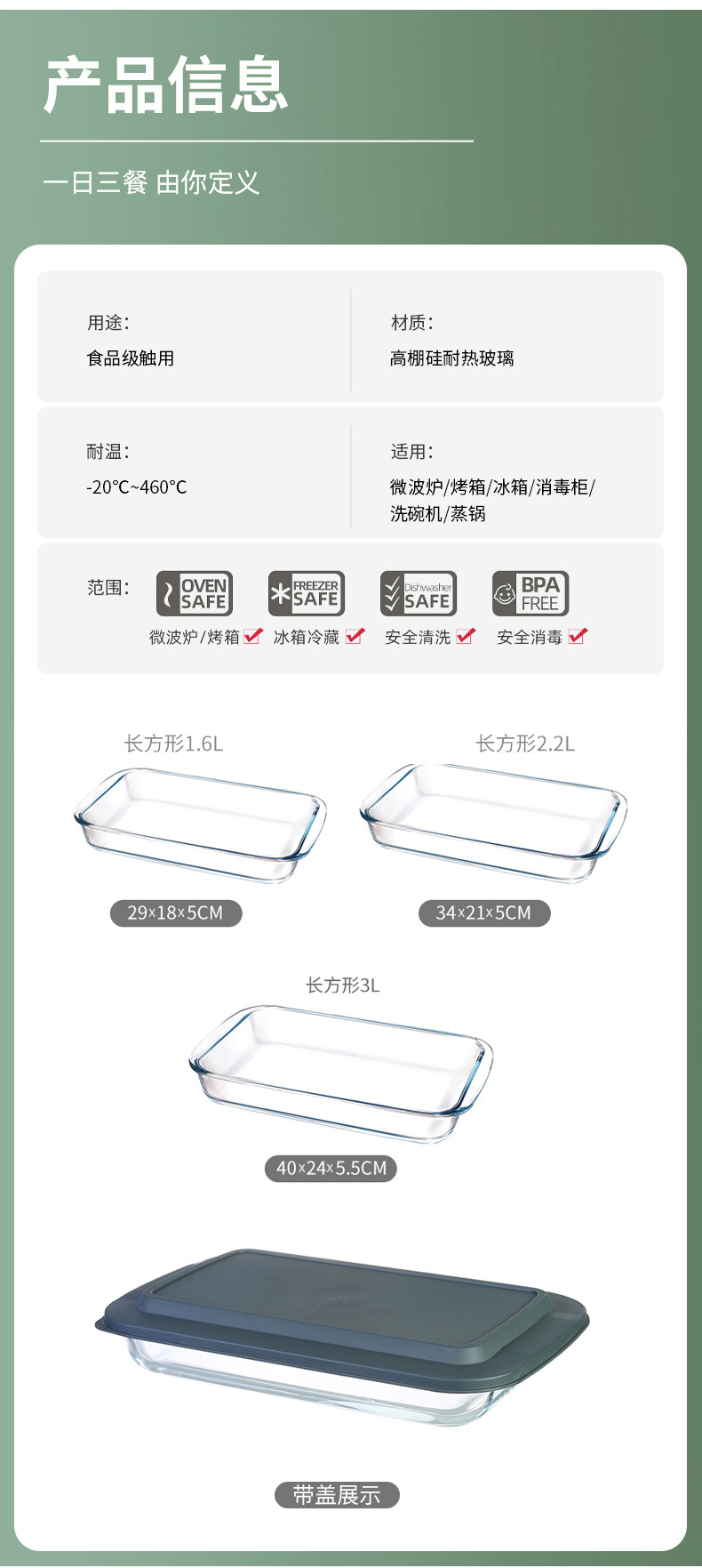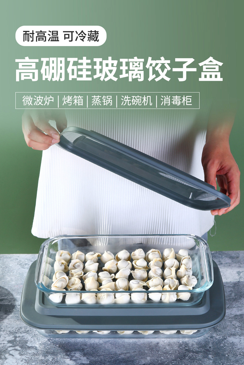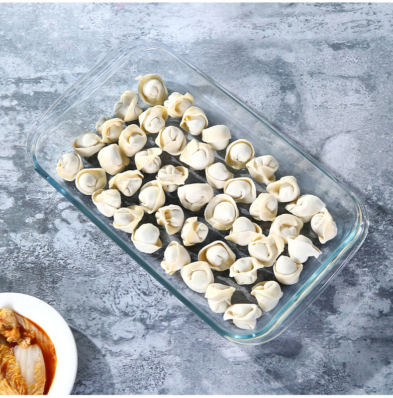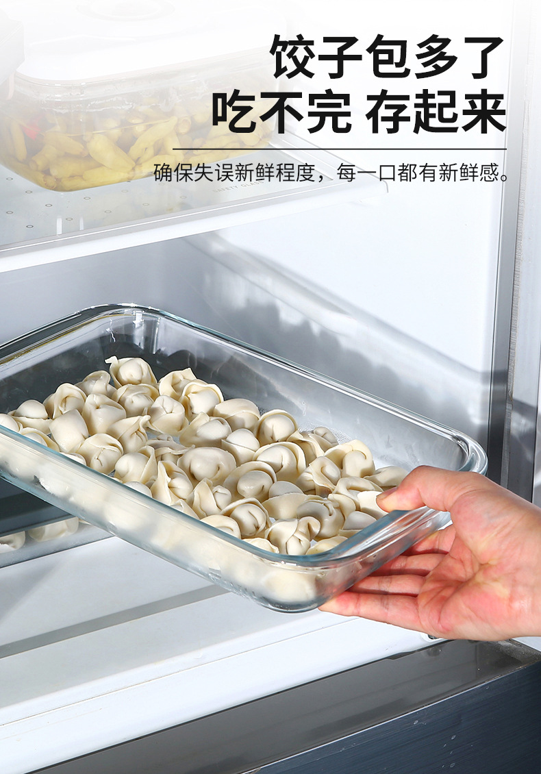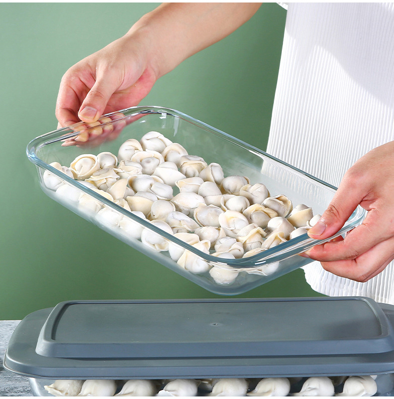 High borosilicate glass tray with lid microwave oven baking tray kitchen storage glass dumpling box rectangular steamed fish tray